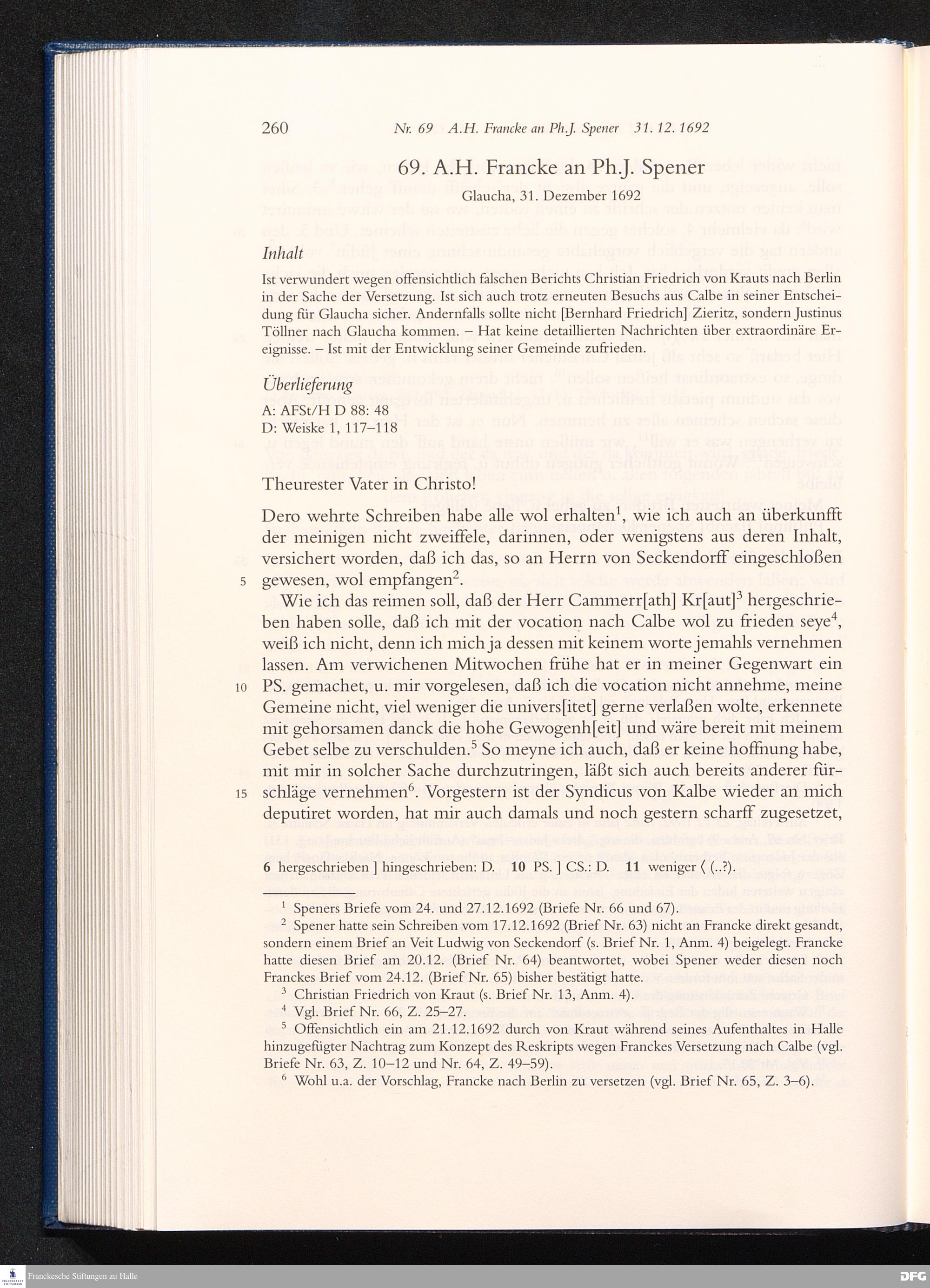 Nr. 69 A. H. Francke an Ph. J. Spener 31.12.1692