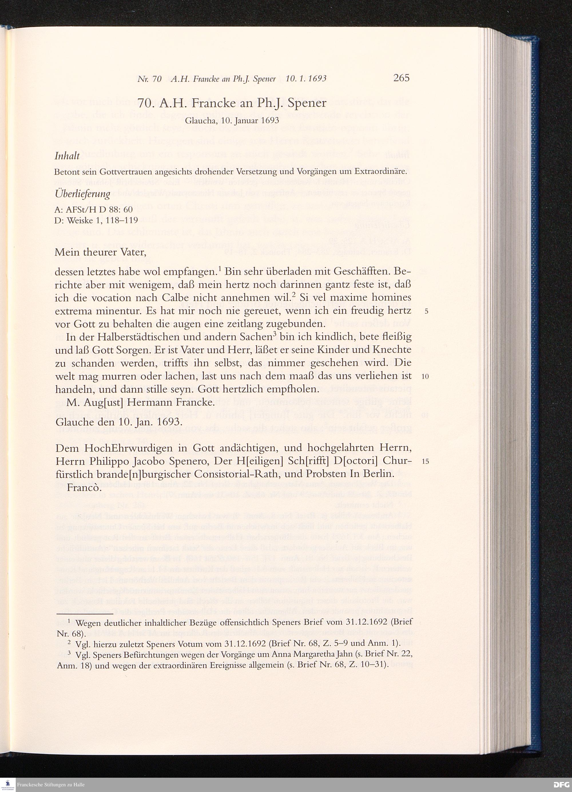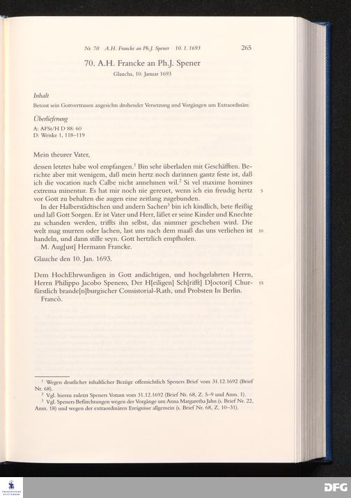 Nr. 70 A. H. Francke an Ph. J. Spener 10.01.1693