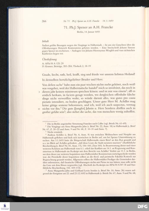 Briefwechsel mit August Hermann Francke : 1689 - 1704 / Philipp Jakob Spener. Hrsg. von Johannes Wallmann ... in Zsarb. mit Veronika Albrecht-Birkner