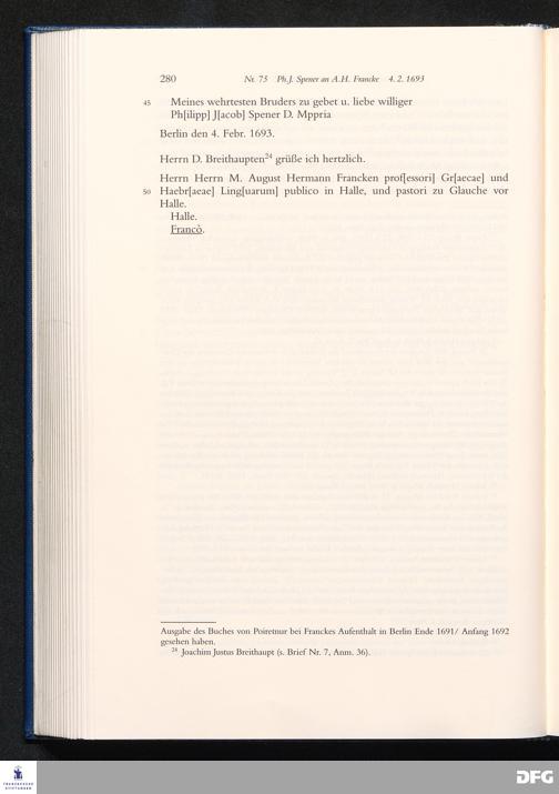 Briefwechsel mit August Hermann Francke : 1689 - 1704 / Philipp Jakob Spener. Hrsg. von Johannes Wallmann ... in Zsarb. mit Veronika Albrecht-Birkner