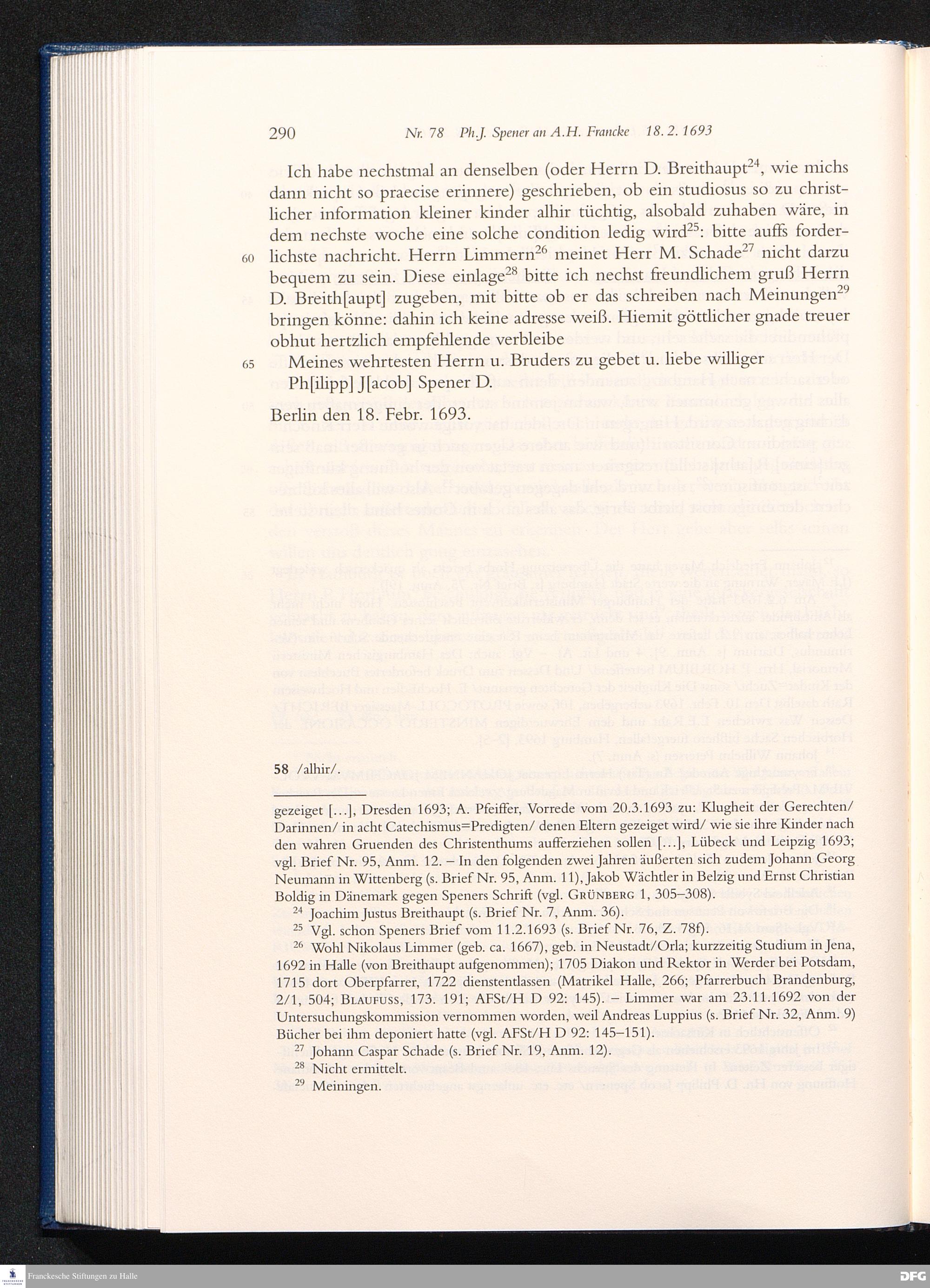 Briefwechsel mit August Hermann Francke : 1689 - 1704 / Philipp Jakob Spener. Hrsg. von Johannes Wallmann ... in Zsarb. mit Veronika Albrecht-Birkner
