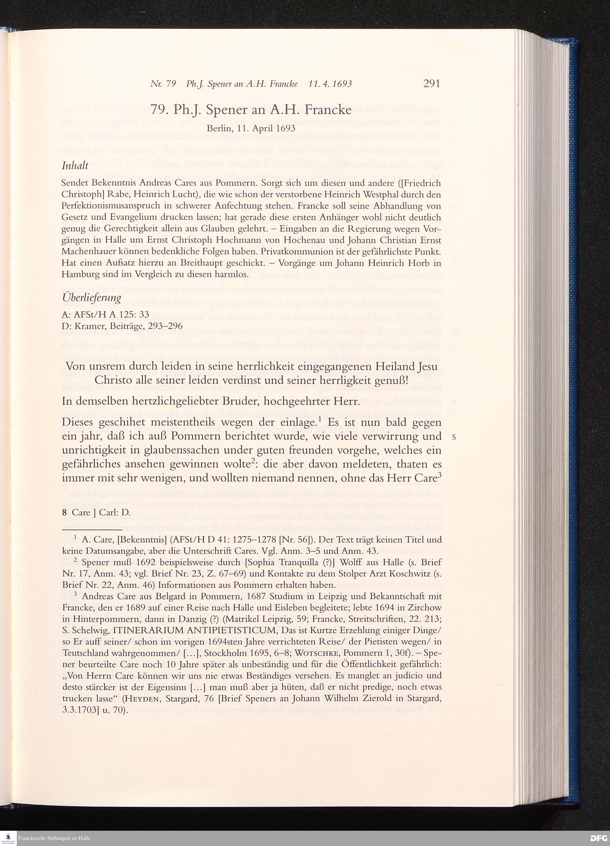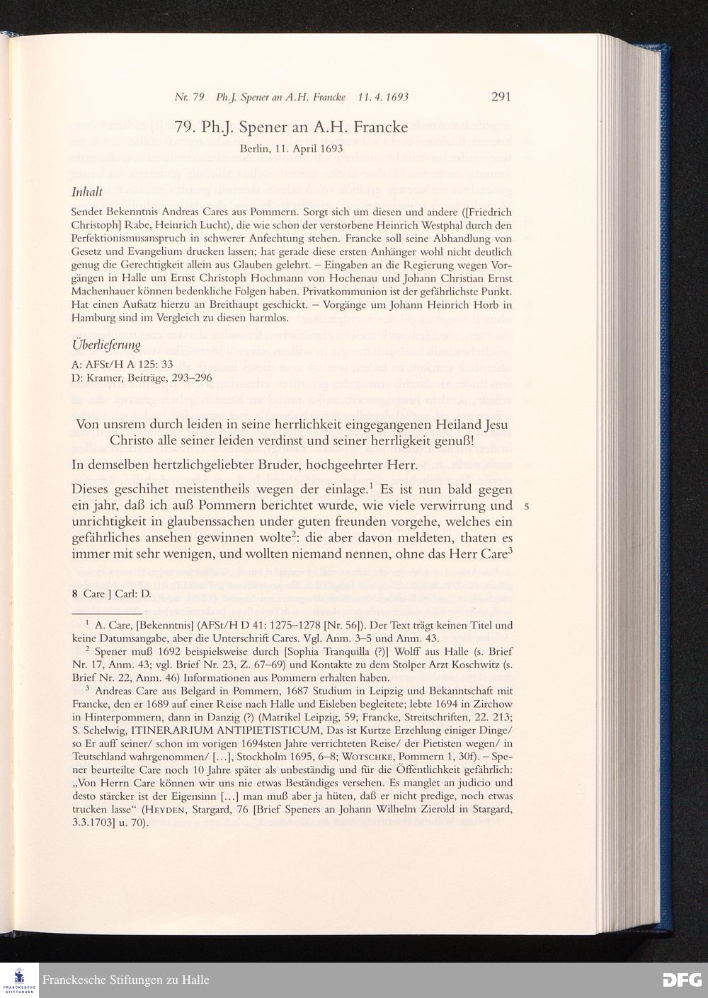 Briefwechsel mit August Hermann Francke : 1689 - 1704 / Philipp Jakob Spener. Hrsg. von Johannes Wallmann ... in Zsarb. mit Veronika Albrecht-Birkner