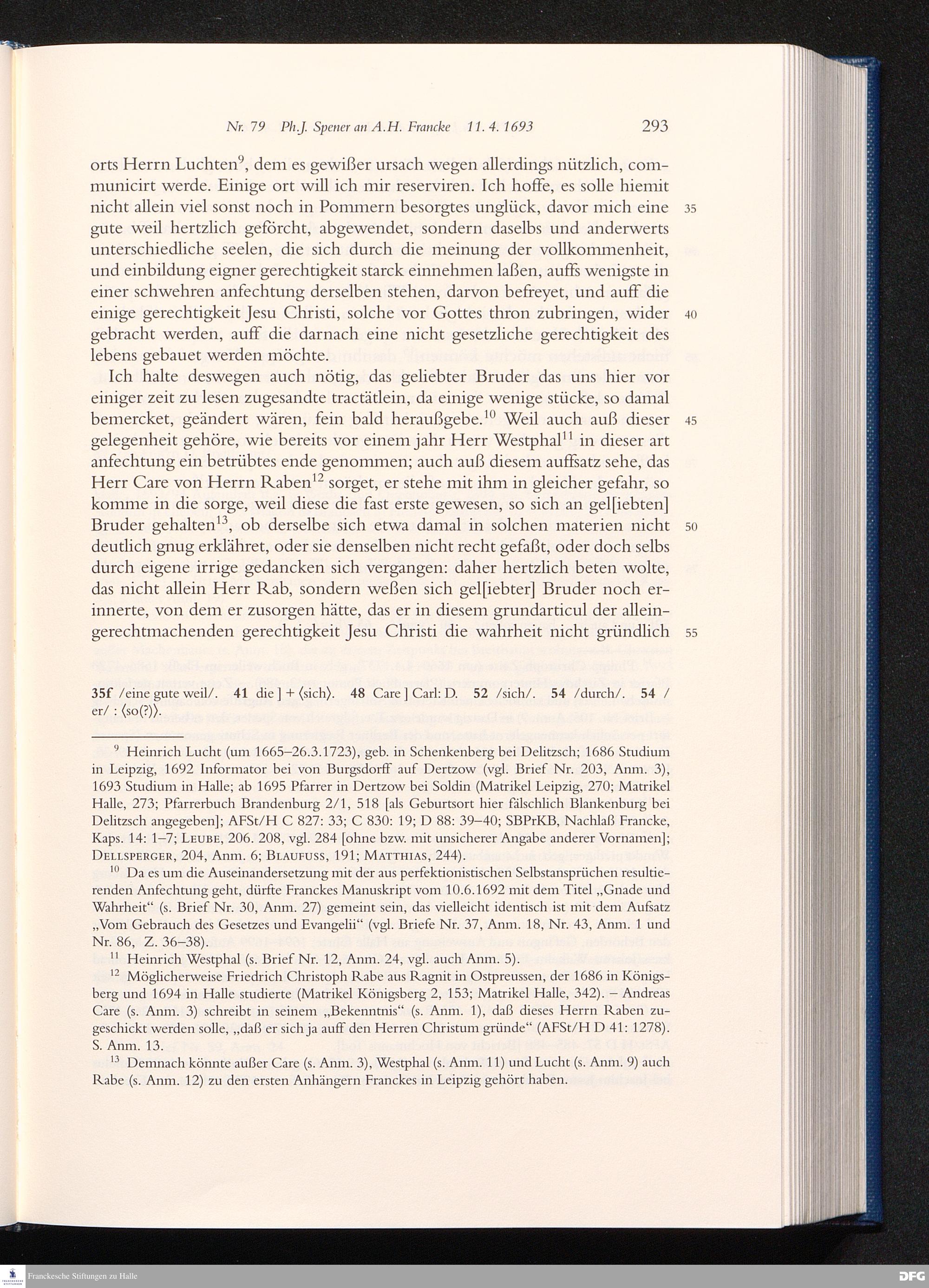 Briefwechsel mit August Hermann Francke : 1689 - 1704 / Philipp Jakob Spener. Hrsg. von Johannes Wallmann ... in Zsarb. mit Veronika Albrecht-Birkner