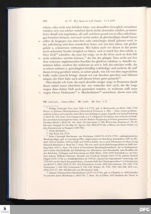 Briefwechsel mit August Hermann Francke : 1689 - 1704 / Philipp Jakob Spener. Hrsg. von Johannes Wallmann ... in Zsarb. mit Veronika Albrecht-Birkner