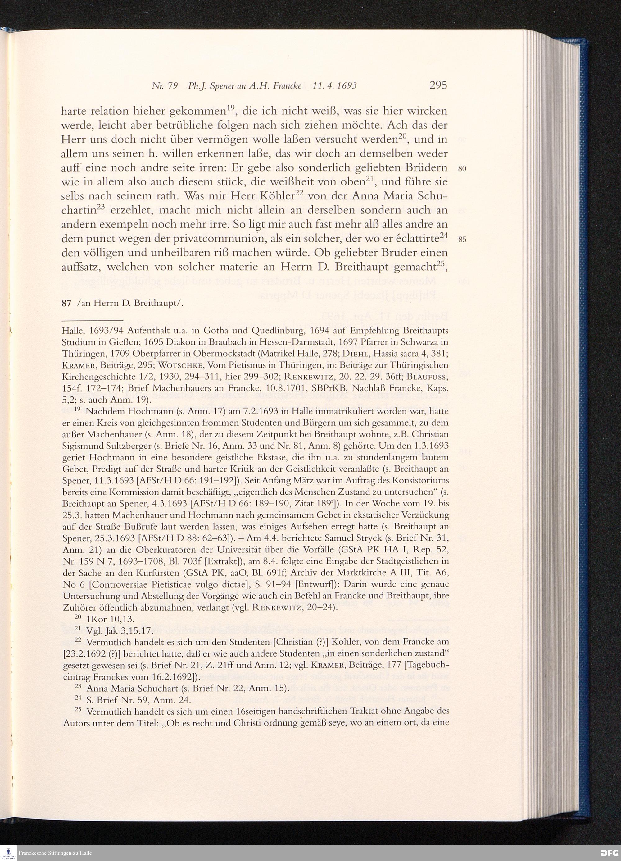 Briefwechsel mit August Hermann Francke : 1689 - 1704 / Philipp Jakob Spener. Hrsg. von Johannes Wallmann ... in Zsarb. mit Veronika Albrecht-Birkner