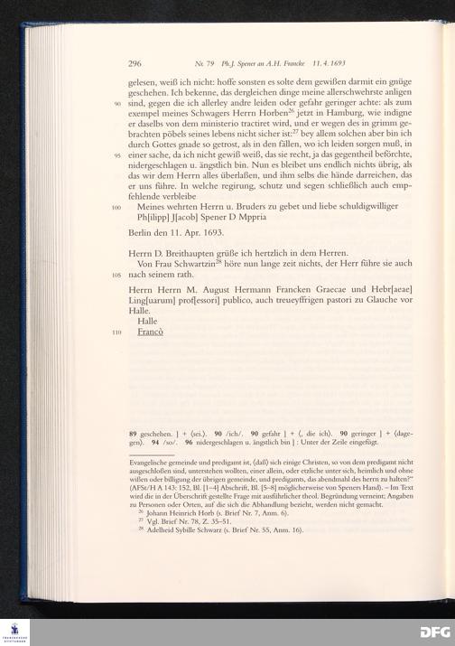 Briefwechsel mit August Hermann Francke : 1689 - 1704 / Philipp Jakob Spener. Hrsg. von Johannes Wallmann ... in Zsarb. mit Veronika Albrecht-Birkner