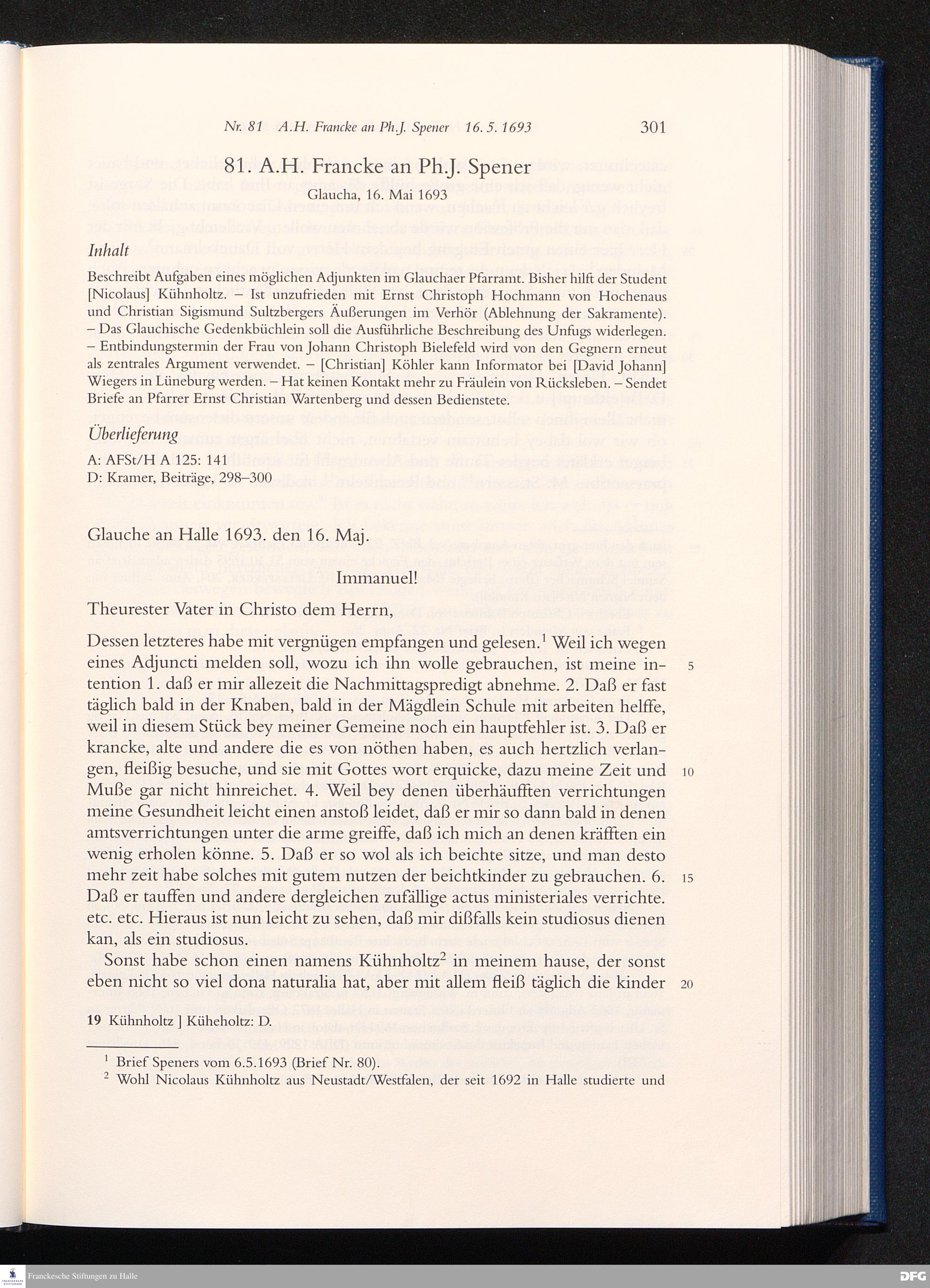Nr. 81 A. H. Francke an Ph. J. Spener 16.05.1693