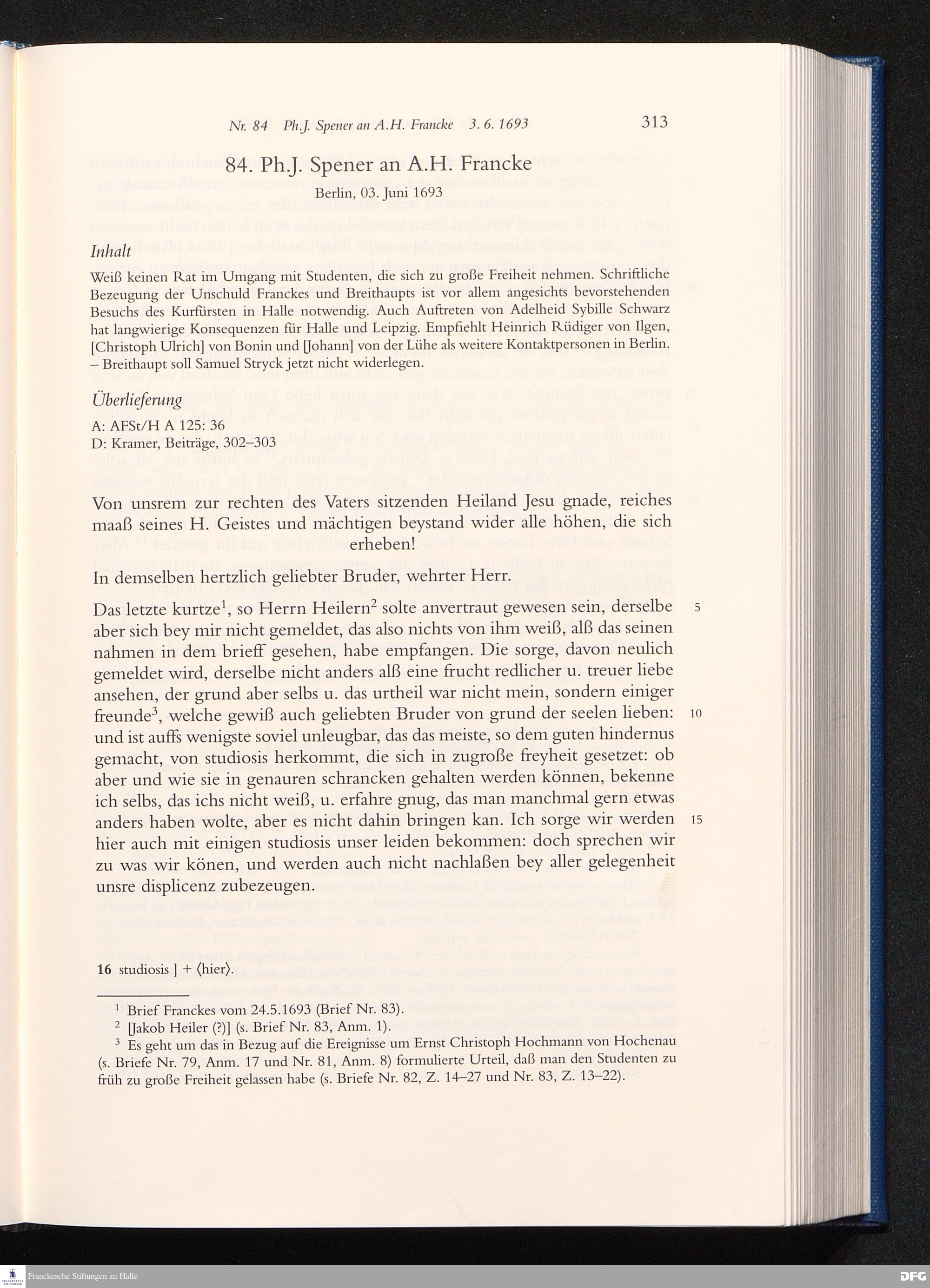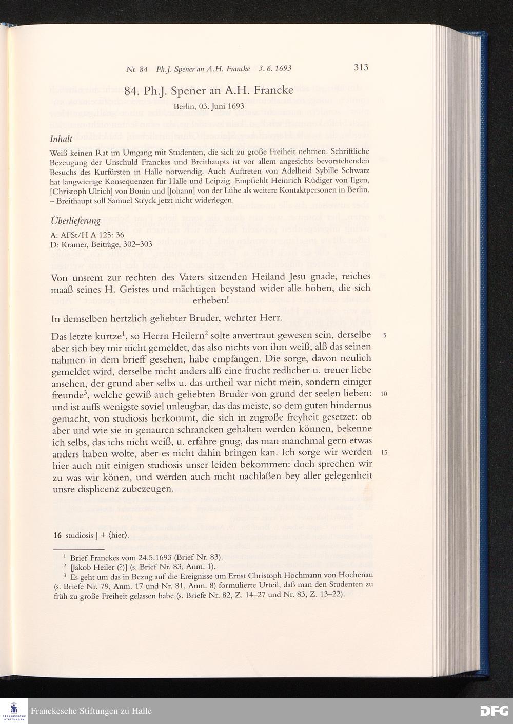 Briefwechsel mit August Hermann Francke : 1689 - 1704 / Philipp Jakob Spener. Hrsg. von Johannes Wallmann ... in Zsarb. mit Veronika Albrecht-Birkner