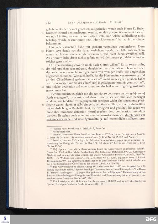 Briefwechsel mit August Hermann Francke : 1689 - 1704 / Philipp Jakob Spener. Hrsg. von Johannes Wallmann ... in Zsarb. mit Veronika Albrecht-Birkner