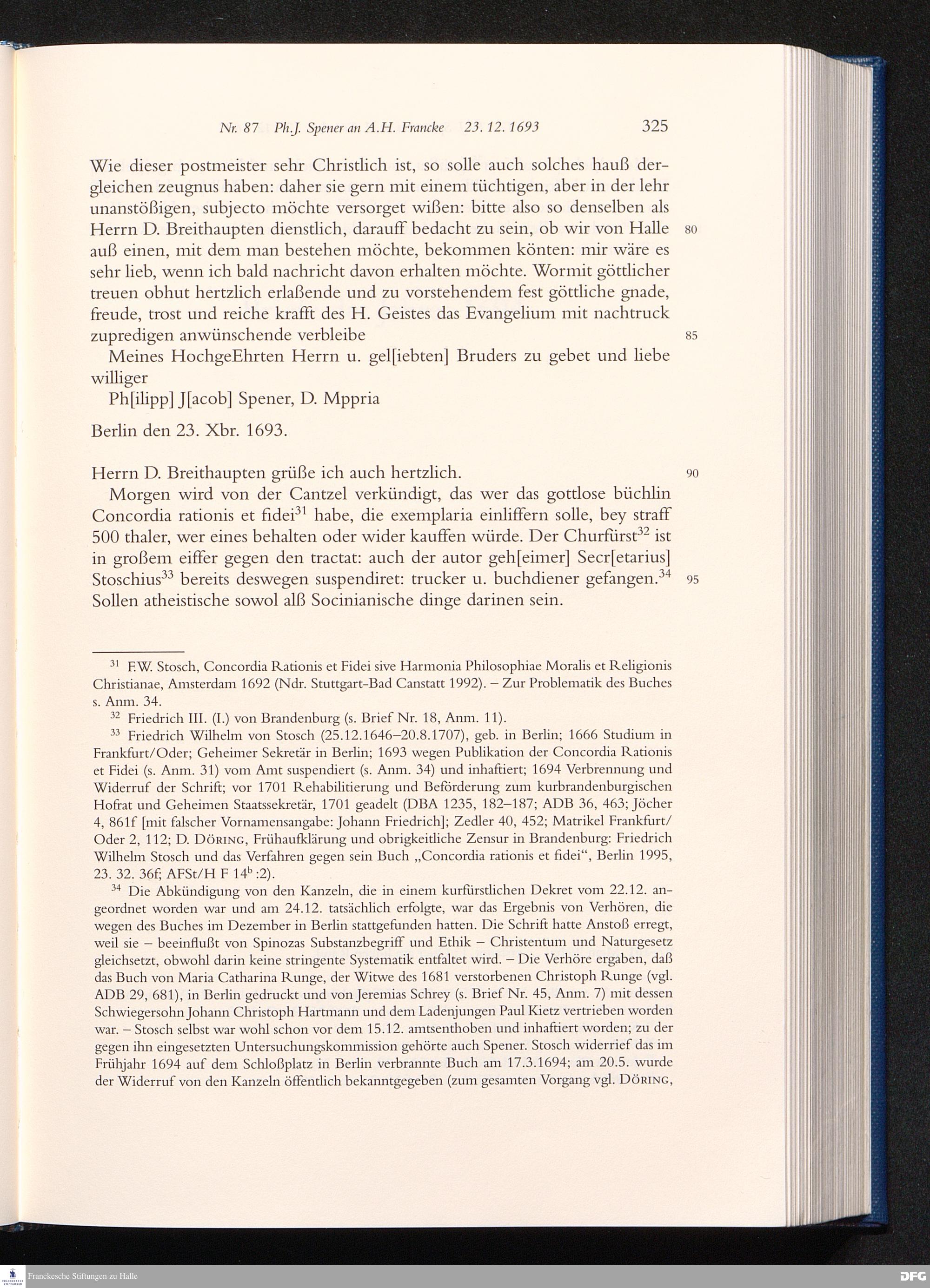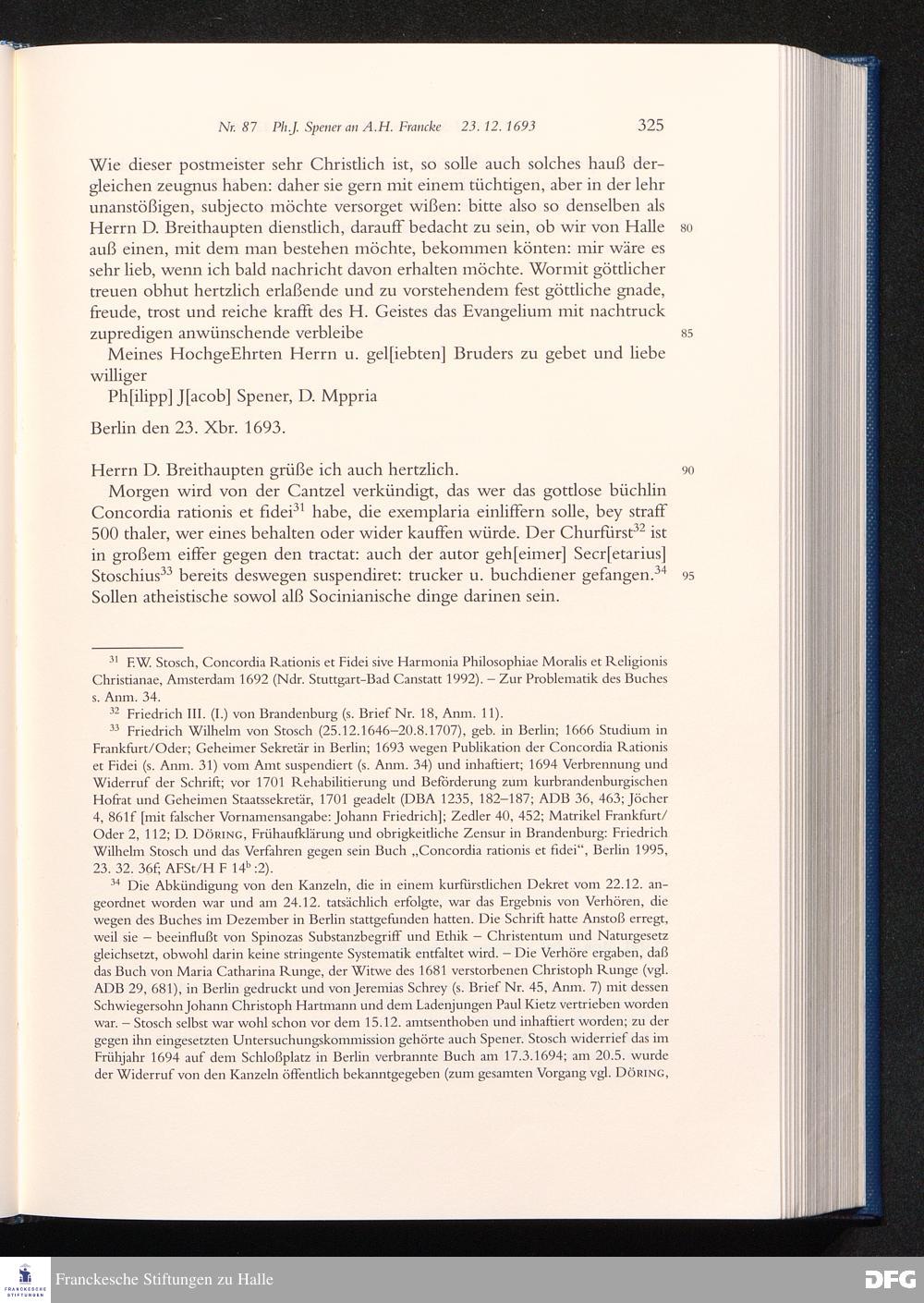 Briefwechsel mit August Hermann Francke : 1689 - 1704 / Philipp Jakob Spener. Hrsg. von Johannes Wallmann ... in Zsarb. mit Veronika Albrecht-Birkner