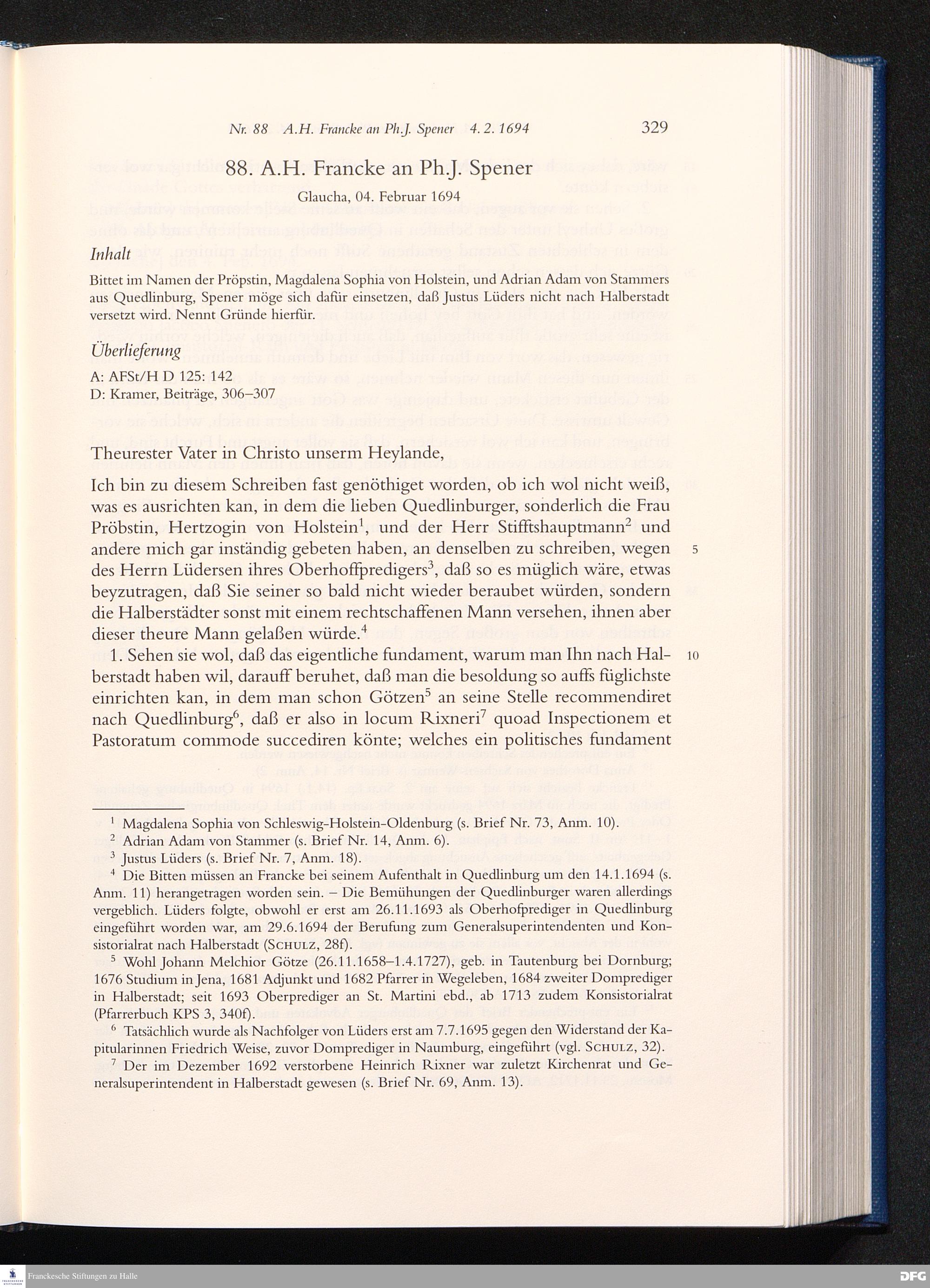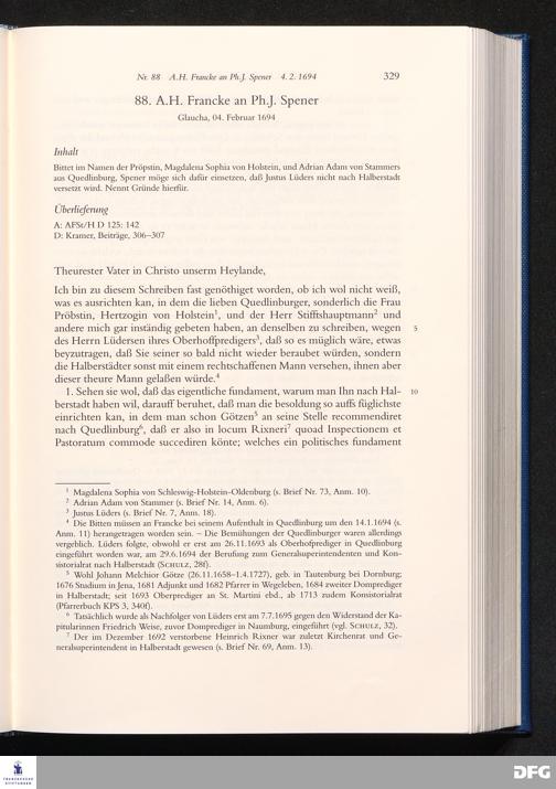 Nr. 88 A. H. Francke an Ph. J. Spener 04.02.1694