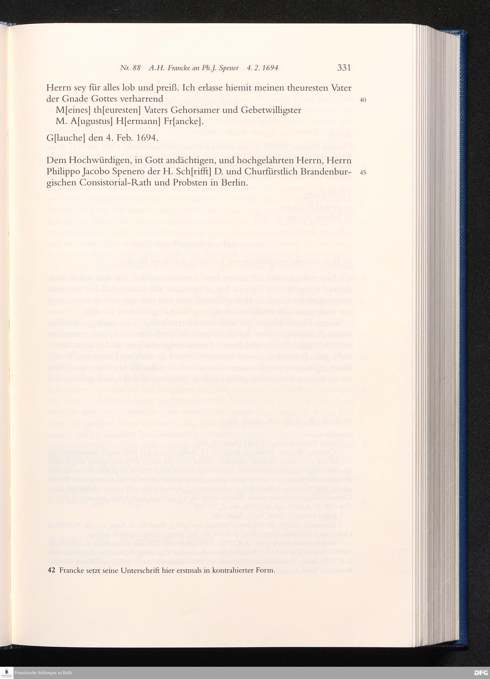 Nr. 88 A. H. Francke an Ph. J. Spener 04.02.1694