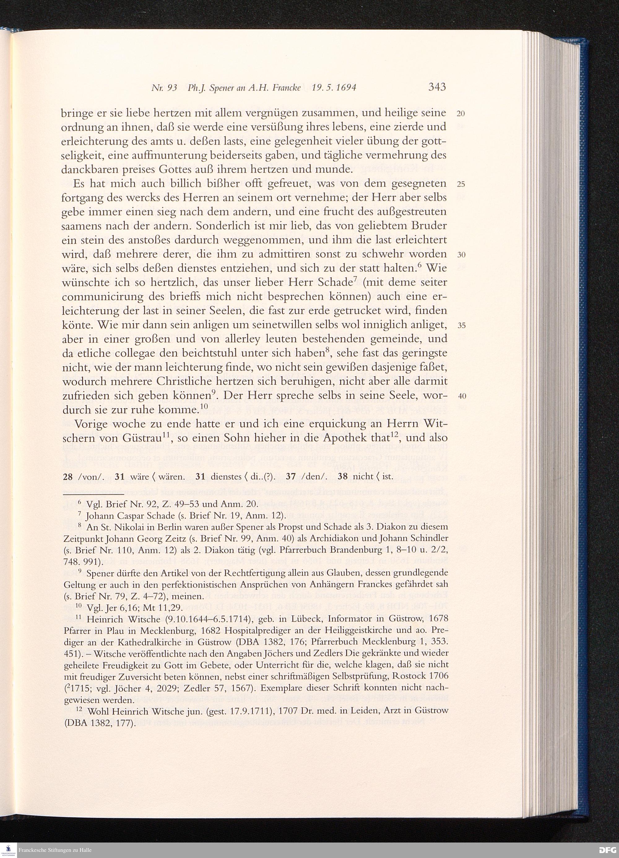 Briefwechsel mit August Hermann Francke : 1689 - 1704 / Philipp Jakob Spener. Hrsg. von Johannes Wallmann ... in Zsarb. mit Veronika Albrecht-Birkner