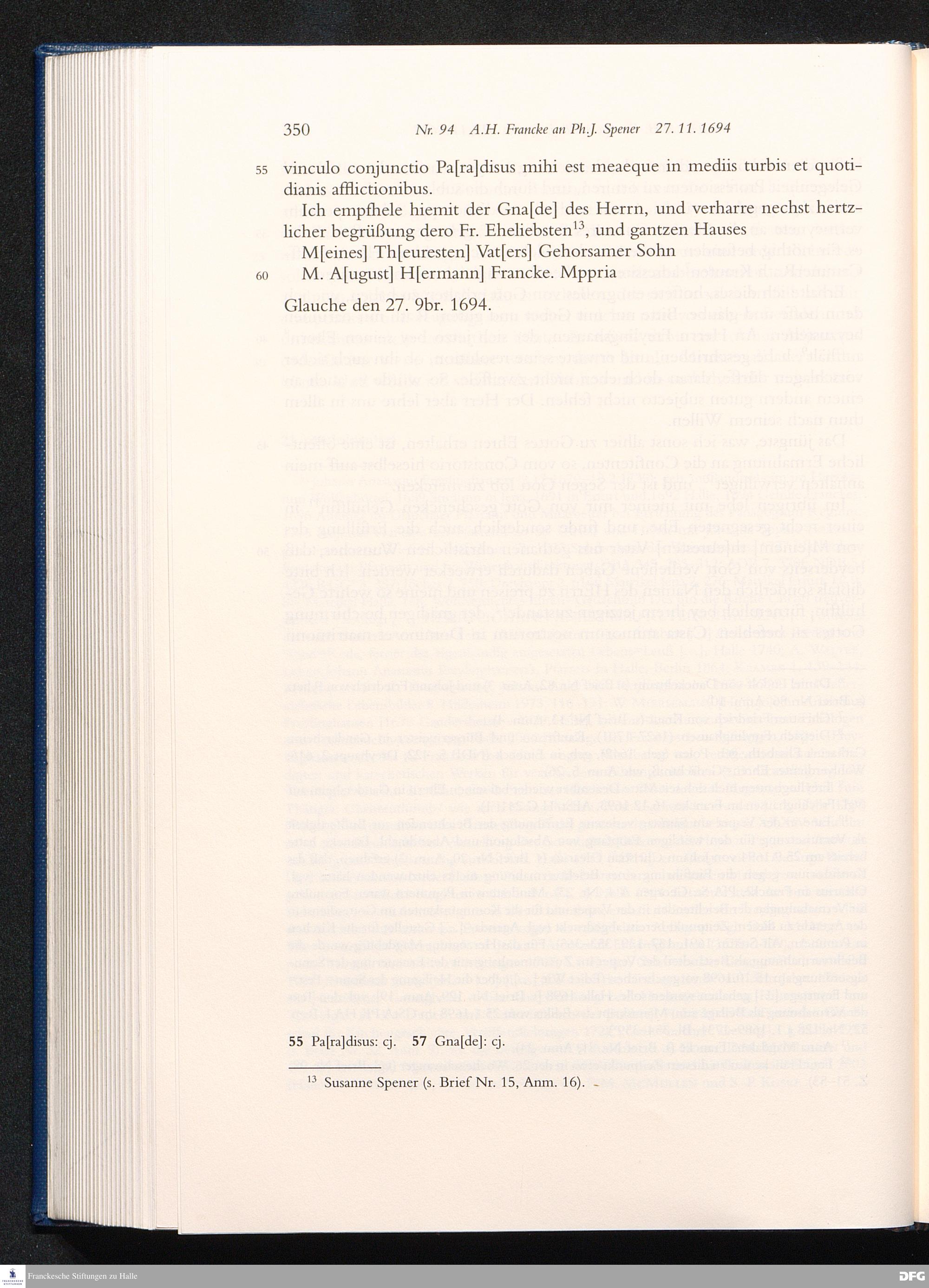 Nr. 94 A. H. Francke an Ph. J. Spener 27.11.1694