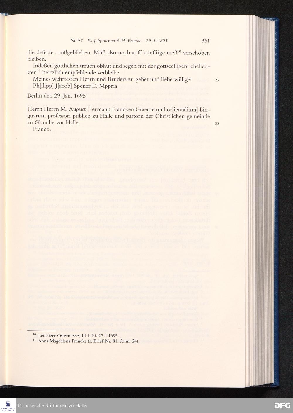 Briefwechsel mit August Hermann Francke : 1689 - 1704 / Philipp Jakob Spener. Hrsg. von Johannes Wallmann ... in Zsarb. mit Veronika Albrecht-Birkner