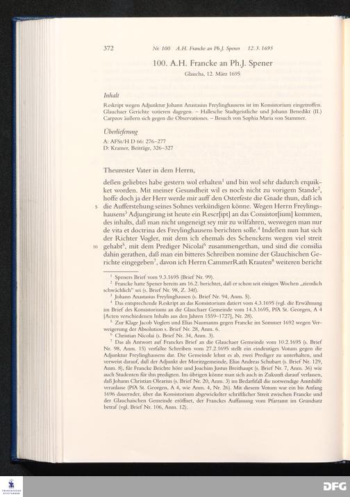 Nr. 100 A. H. Francke an Ph. J. Spener 12.03.1695
