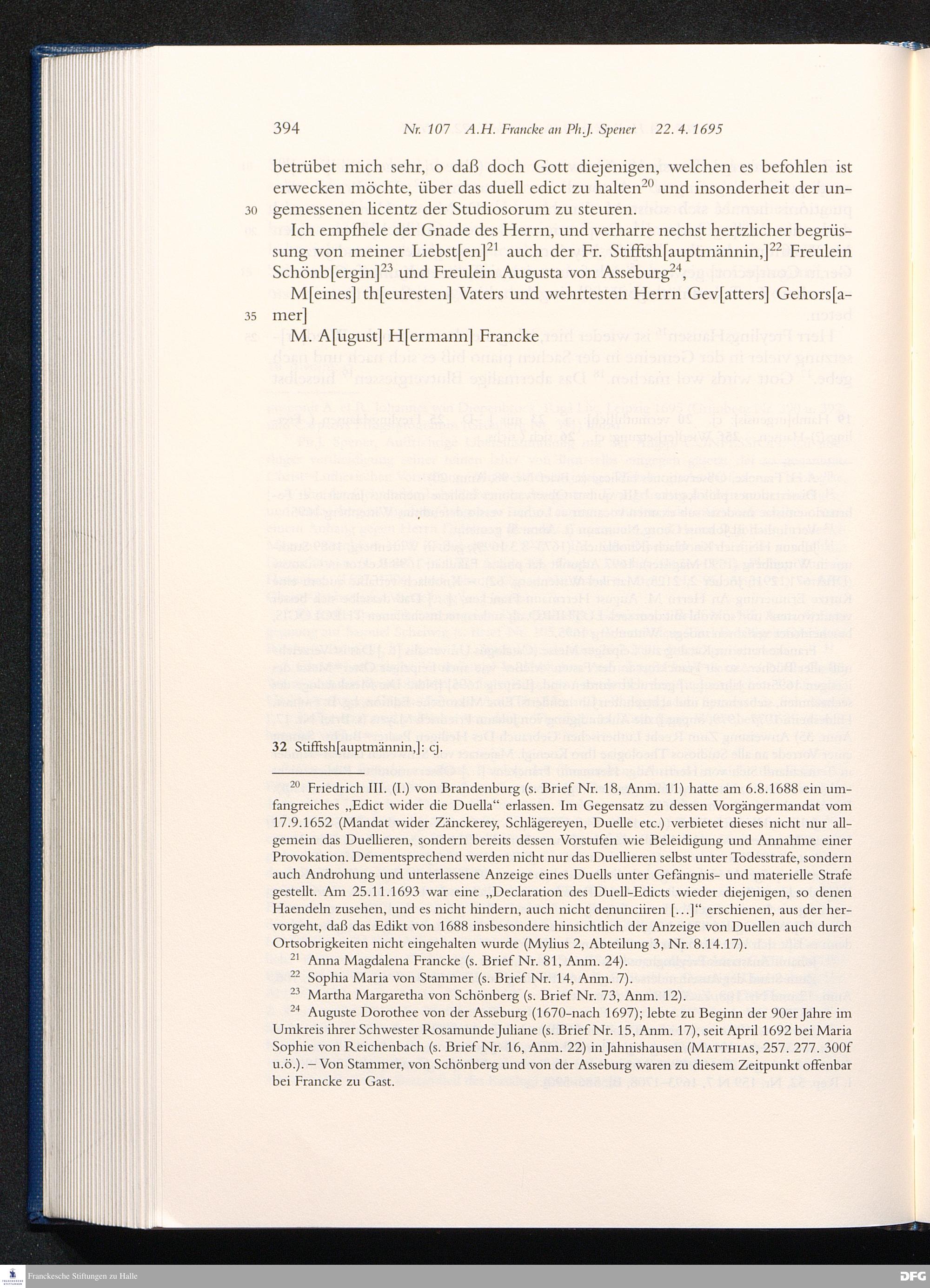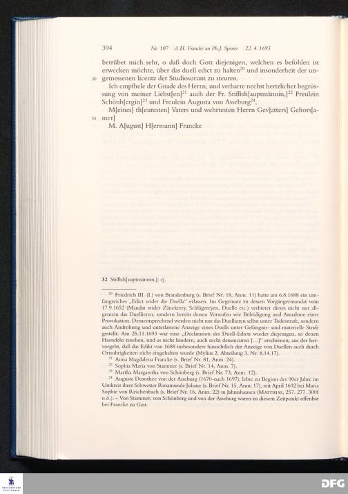 Nr. 107 A. H. Francke an Ph. J. Spener 22.04.1695