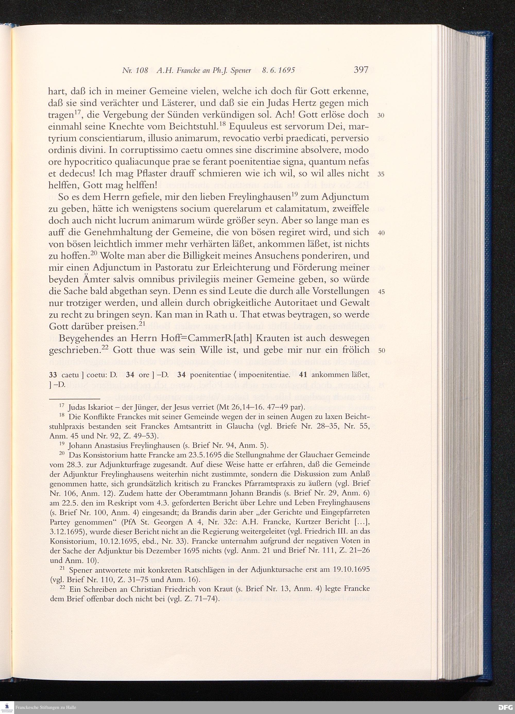 Nr. 108 A. H. Francke an Ph. J. Spener 08.06.1695