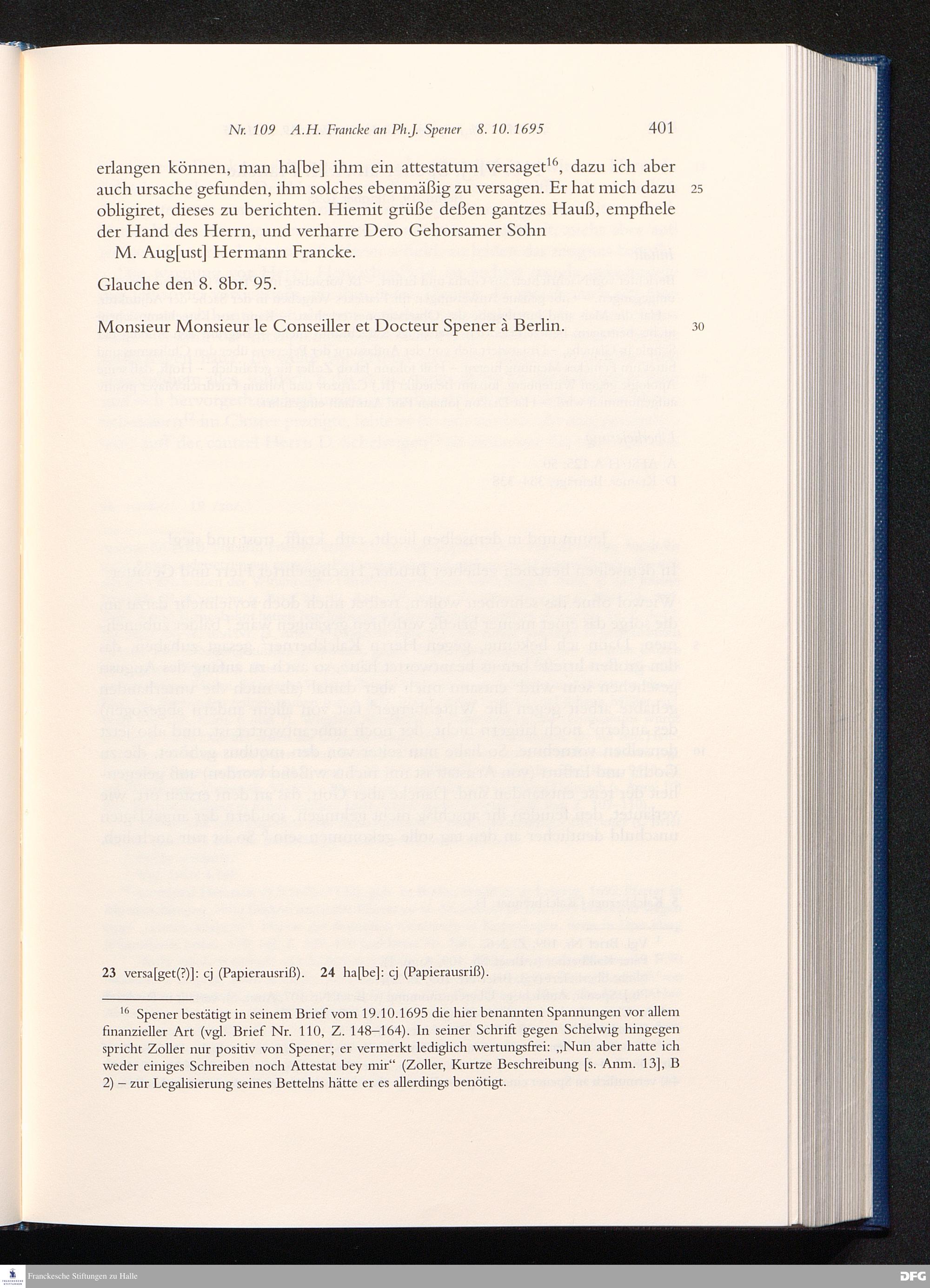 Nr. 109 A. H. Francke an Ph. J. Spener 08.10.1695