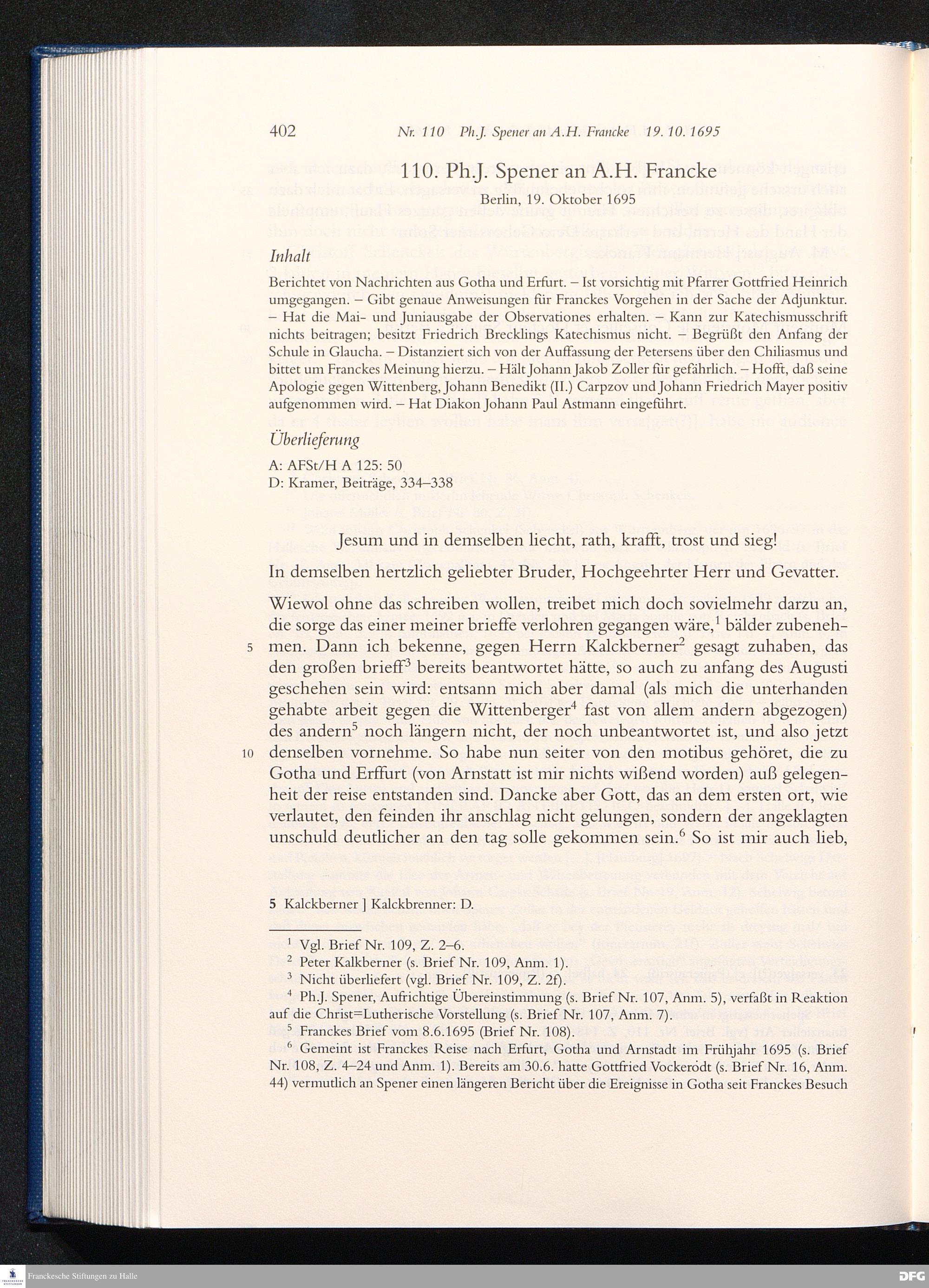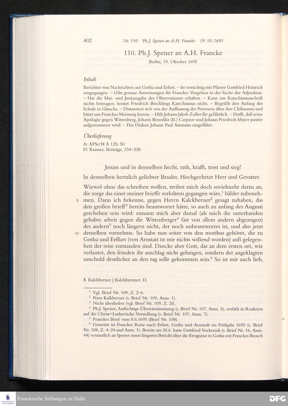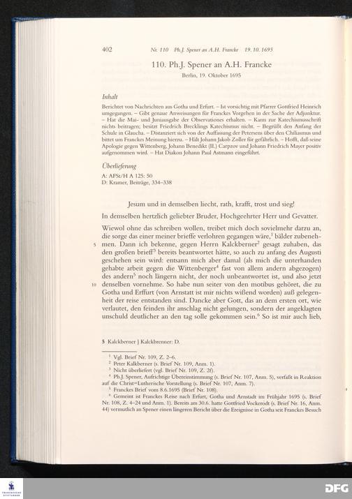 Briefwechsel mit August Hermann Francke : 1689 - 1704 / Philipp Jakob Spener. Hrsg. von Johannes Wallmann ... in Zsarb. mit Veronika Albrecht-Birkner