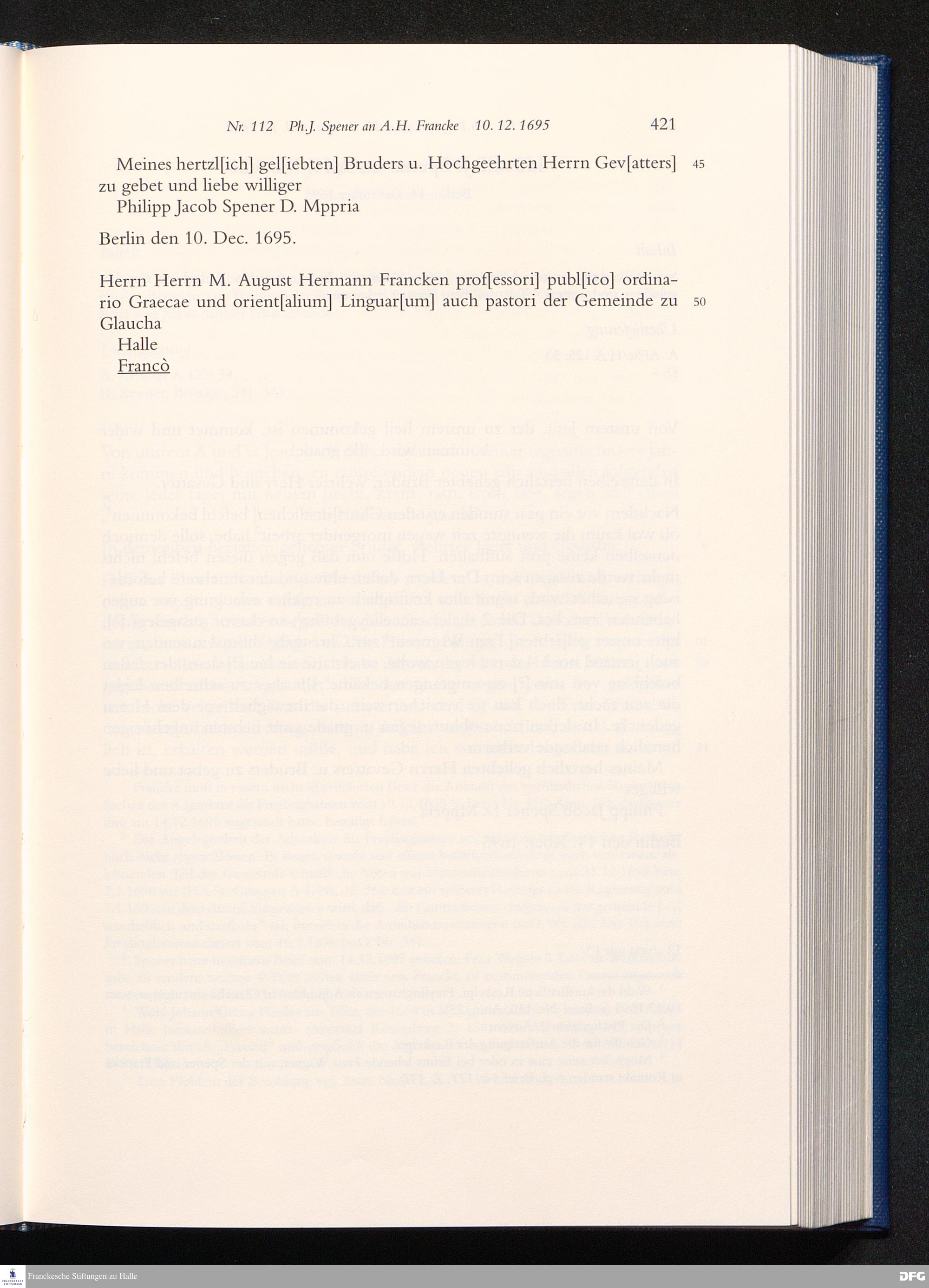 Briefwechsel mit August Hermann Francke : 1689 - 1704 / Philipp Jakob Spener. Hrsg. von Johannes Wallmann ... in Zsarb. mit Veronika Albrecht-Birkner