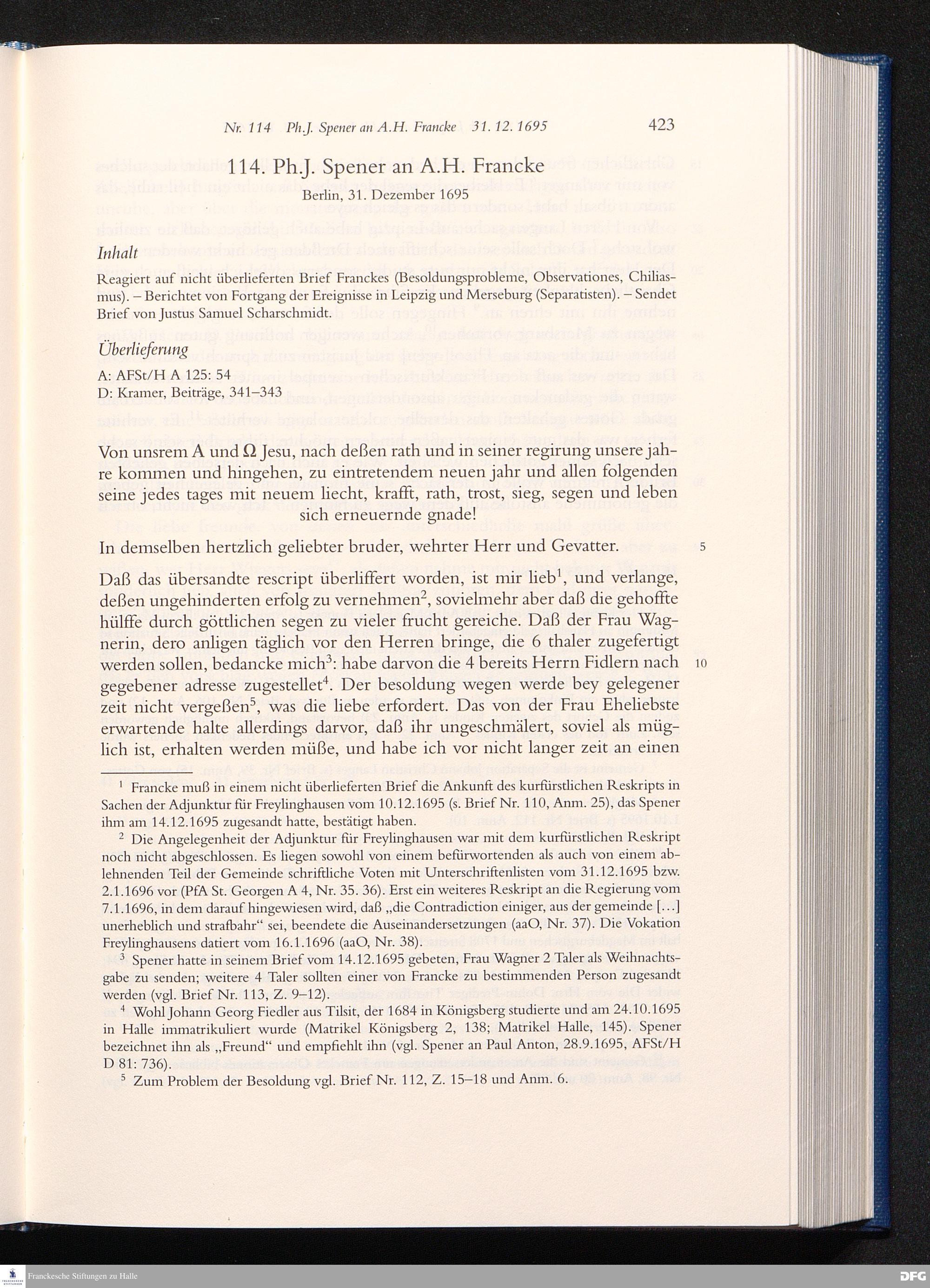 Briefwechsel mit August Hermann Francke : 1689 - 1704 / Philipp Jakob Spener. Hrsg. von Johannes Wallmann ... in Zsarb. mit Veronika Albrecht-Birkner