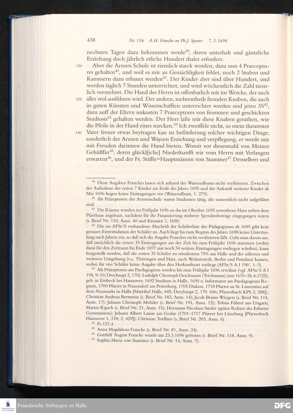 Nr. 116 A. H. Francke an Ph. J. Spener 07.03.1696