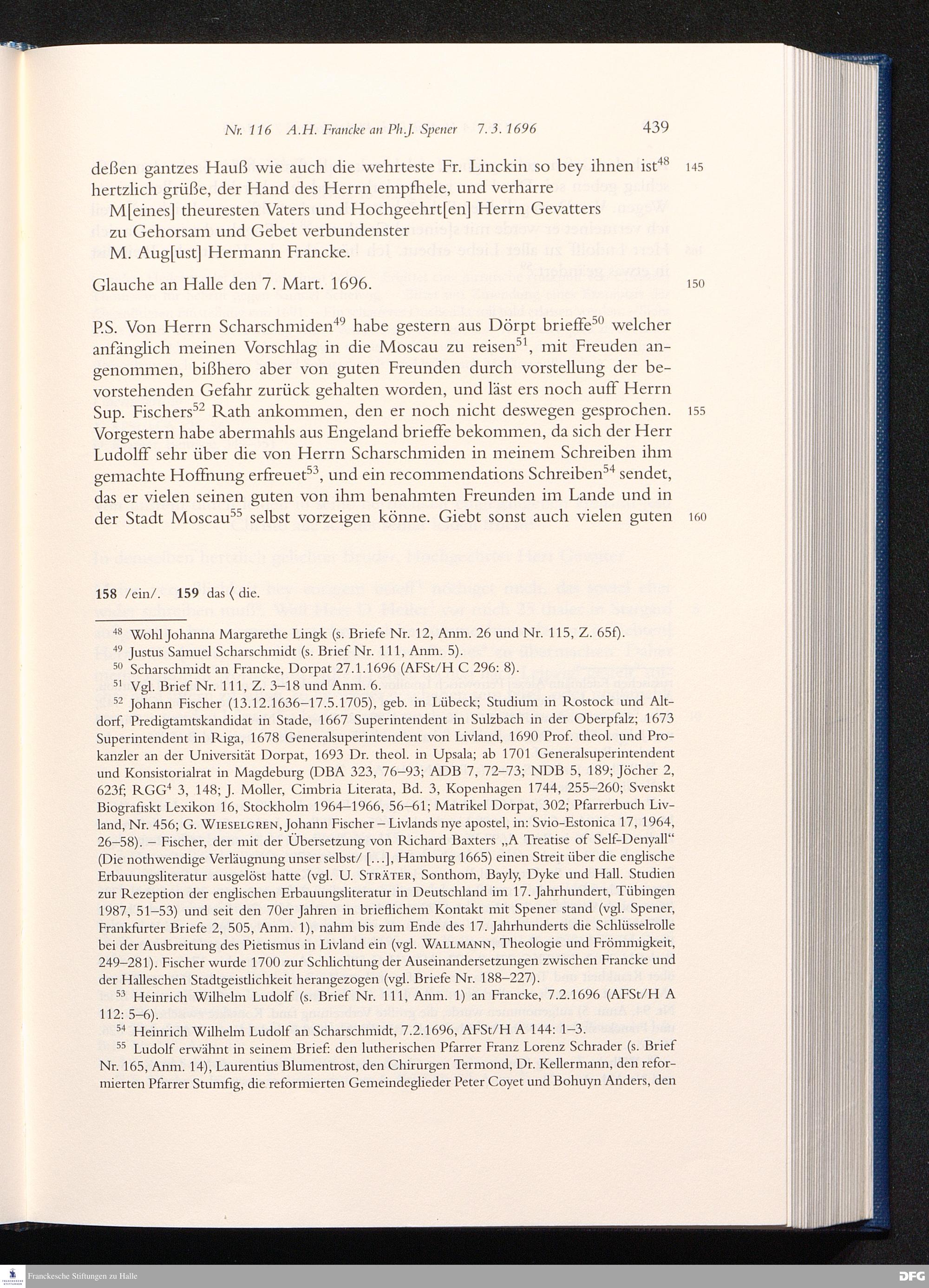 Nr. 116 A. H. Francke an Ph. J. Spener 07.03.1696