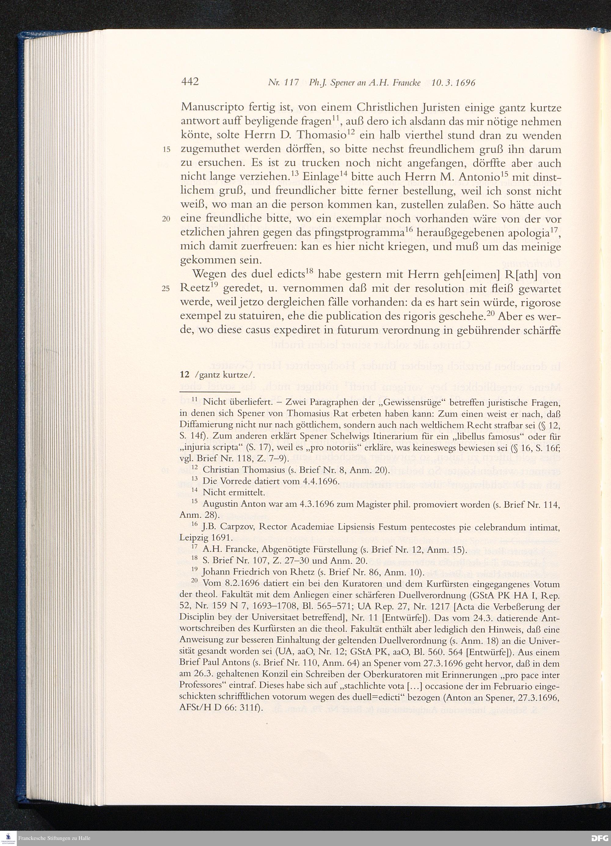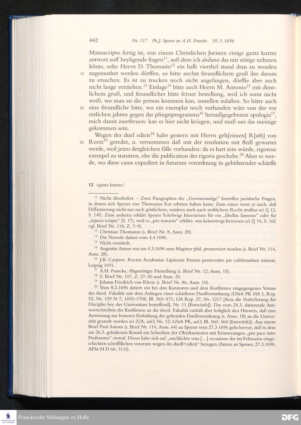 Briefwechsel mit August Hermann Francke : 1689 - 1704 / Philipp Jakob Spener. Hrsg. von Johannes Wallmann ... in Zsarb. mit Veronika Albrecht-Birkner