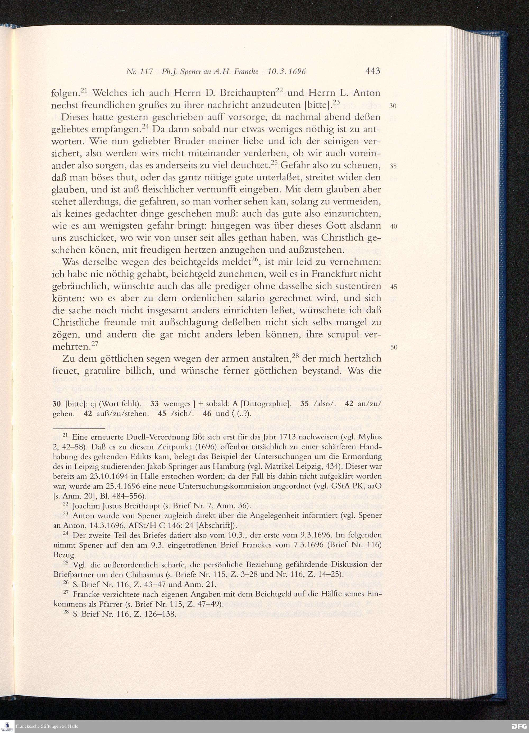 Briefwechsel mit August Hermann Francke : 1689 - 1704 / Philipp Jakob Spener. Hrsg. von Johannes Wallmann ... in Zsarb. mit Veronika Albrecht-Birkner