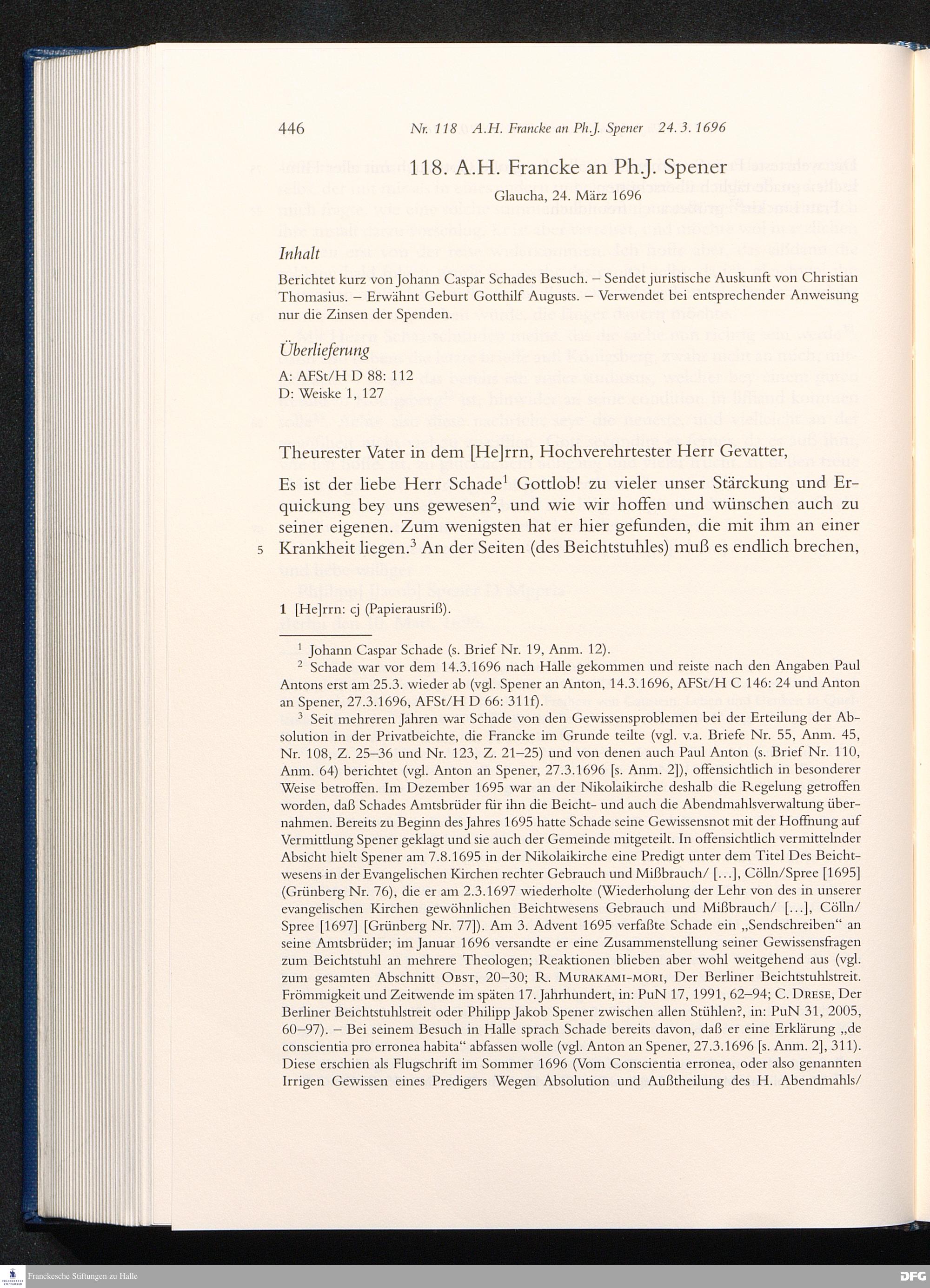 Nr. 118 A. H. Francke an Ph. J. Spener 24.03.1696