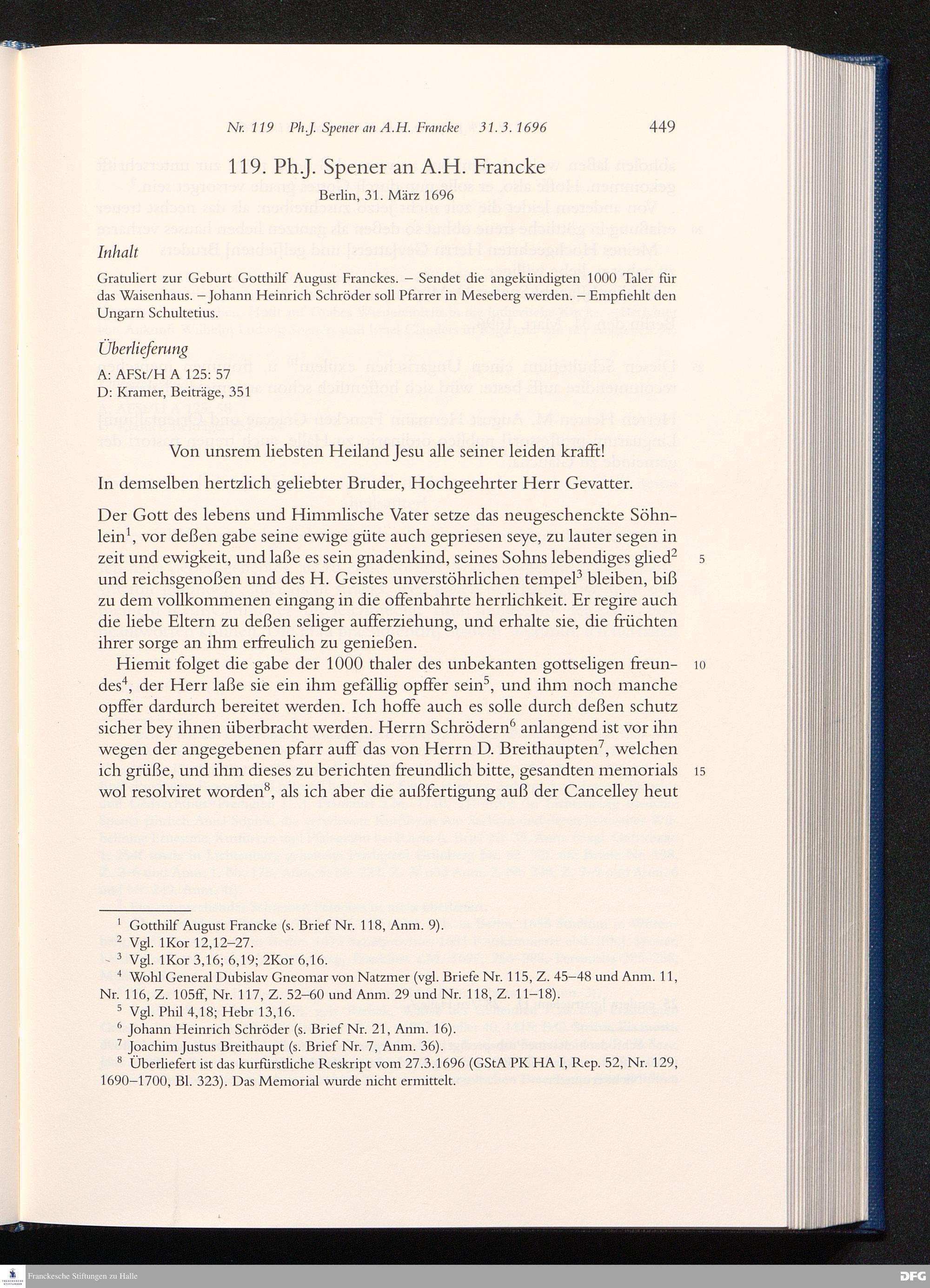 Briefwechsel mit August Hermann Francke : 1689 - 1704 / Philipp Jakob Spener. Hrsg. von Johannes Wallmann ... in Zsarb. mit Veronika Albrecht-Birkner
