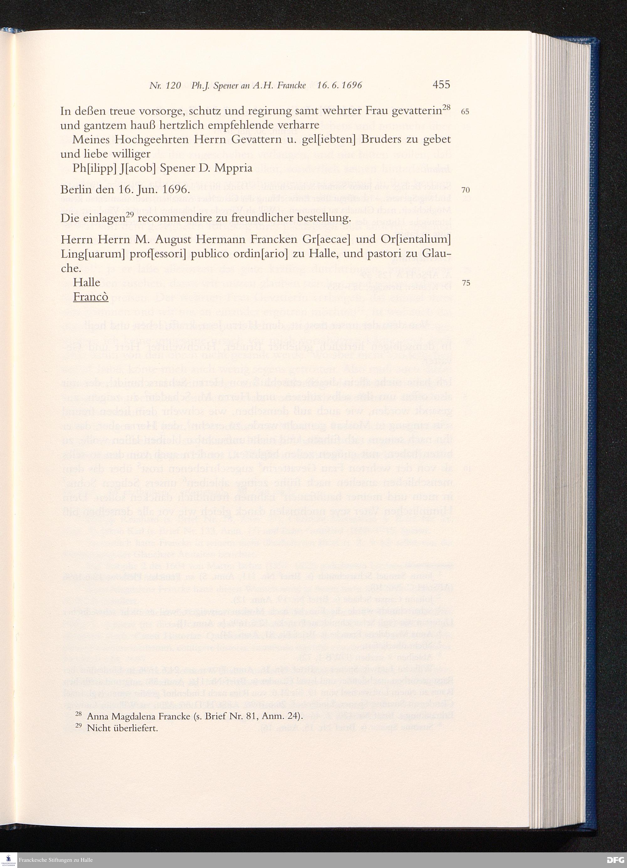 Briefwechsel mit August Hermann Francke : 1689 - 1704 / Philipp Jakob Spener. Hrsg. von Johannes Wallmann ... in Zsarb. mit Veronika Albrecht-Birkner
