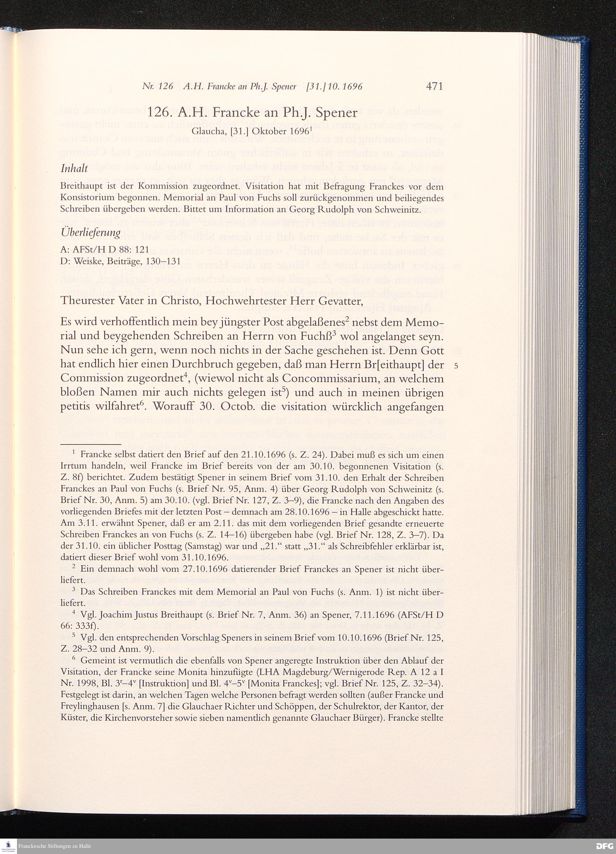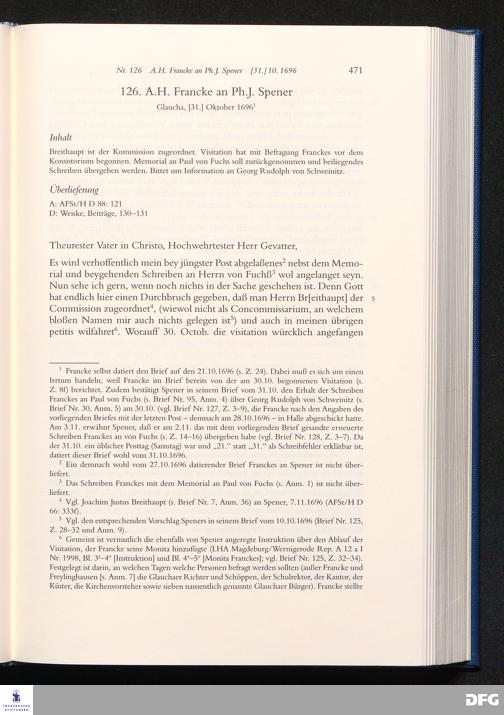 Nr. 126 A. H. Francke an Ph. J. Spener [31.]10.1696