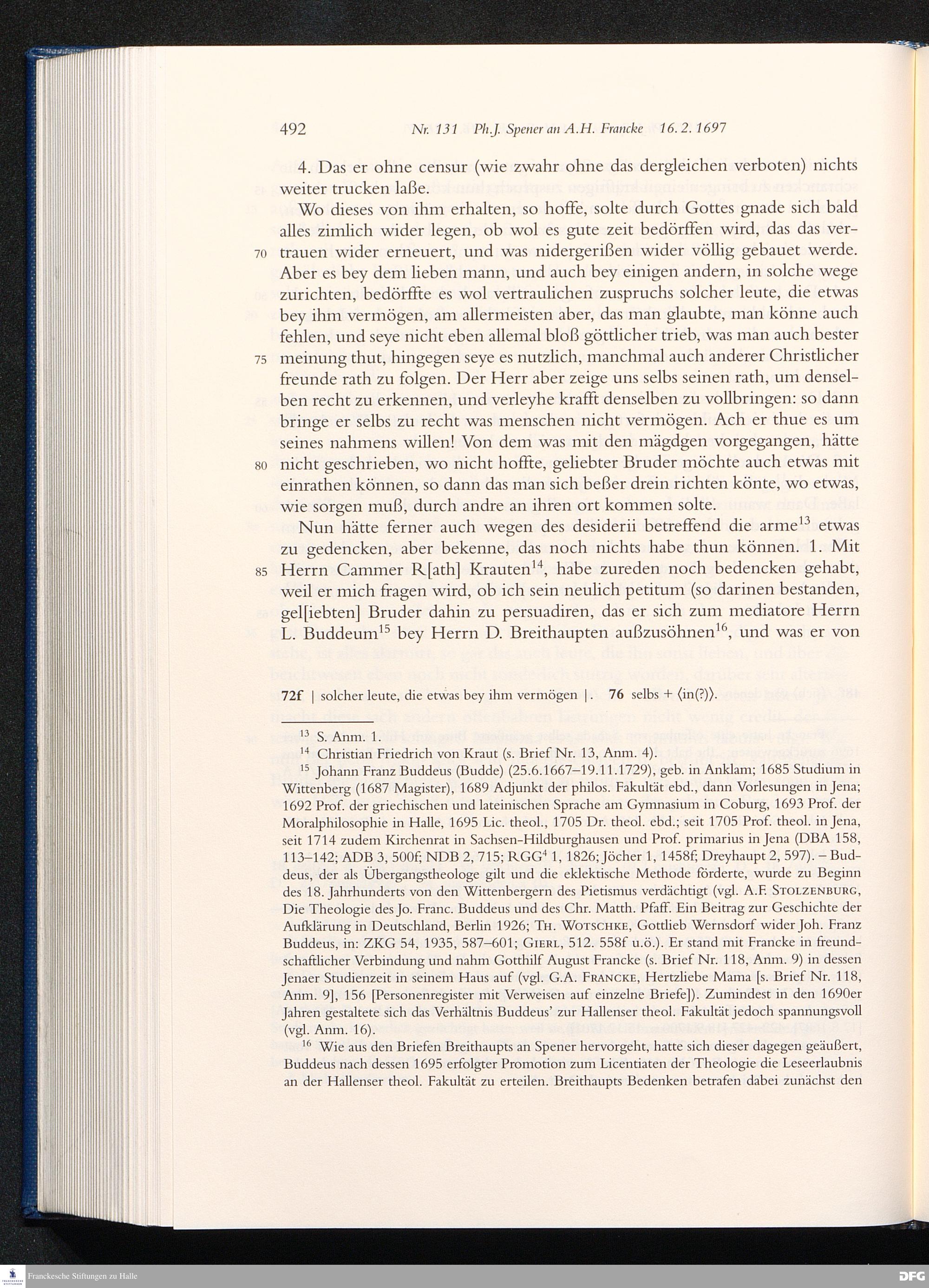 Briefwechsel mit August Hermann Francke : 1689 - 1704 / Philipp Jakob Spener. Hrsg. von Johannes Wallmann ... in Zsarb. mit Veronika Albrecht-Birkner