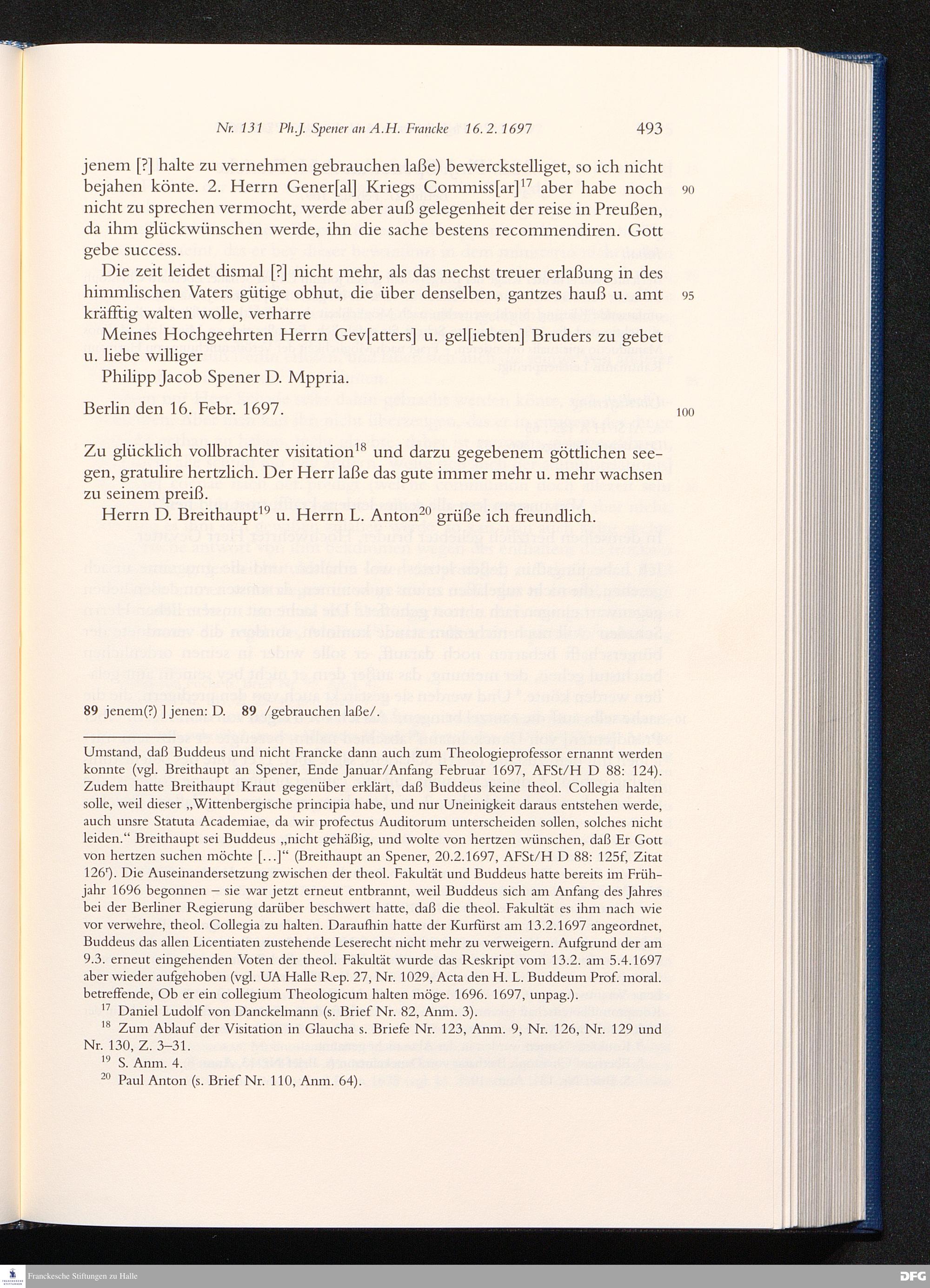 Briefwechsel mit August Hermann Francke : 1689 - 1704 / Philipp Jakob Spener. Hrsg. von Johannes Wallmann ... in Zsarb. mit Veronika Albrecht-Birkner