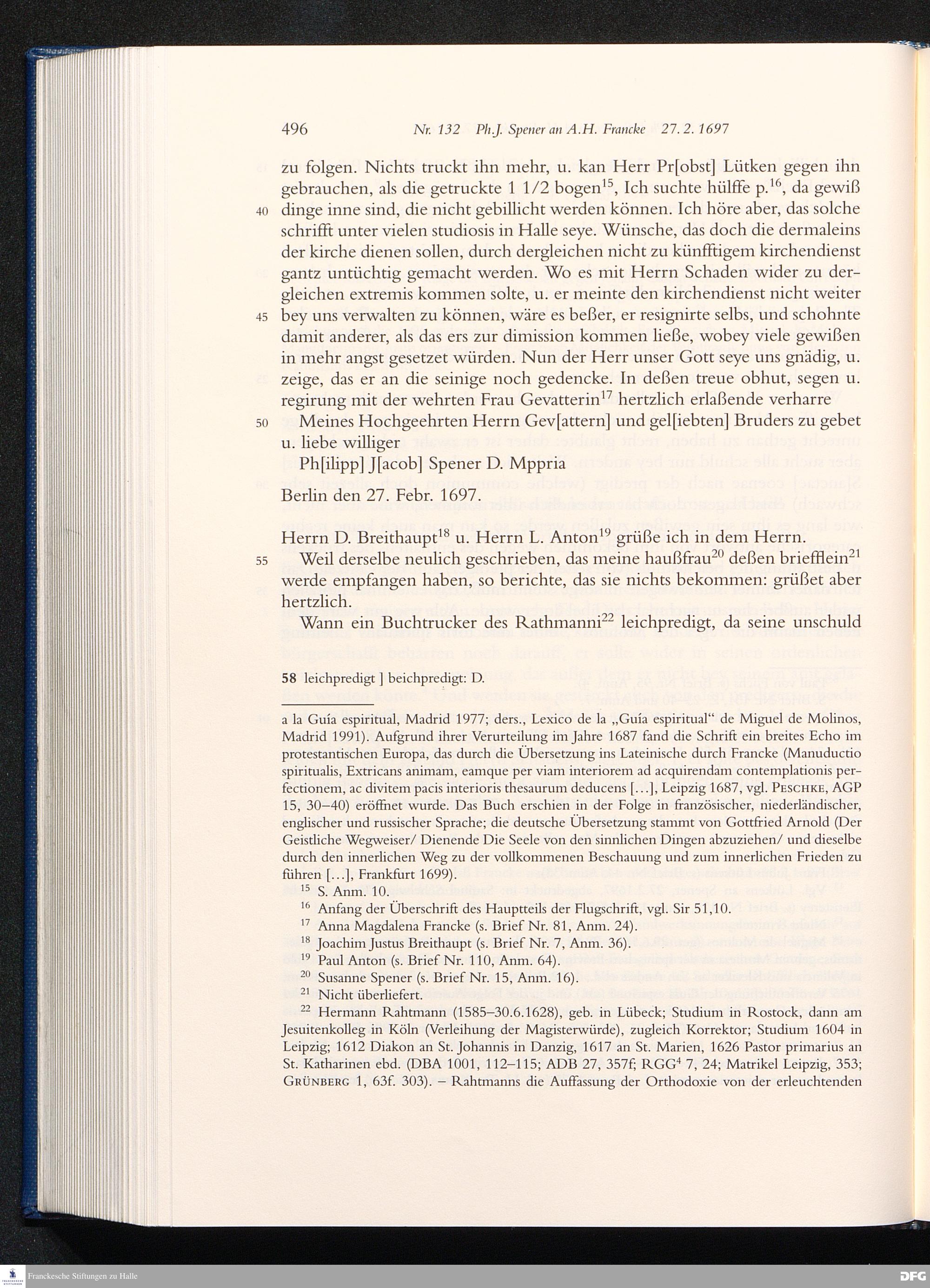Briefwechsel mit August Hermann Francke : 1689 - 1704 / Philipp Jakob Spener. Hrsg. von Johannes Wallmann ... in Zsarb. mit Veronika Albrecht-Birkner