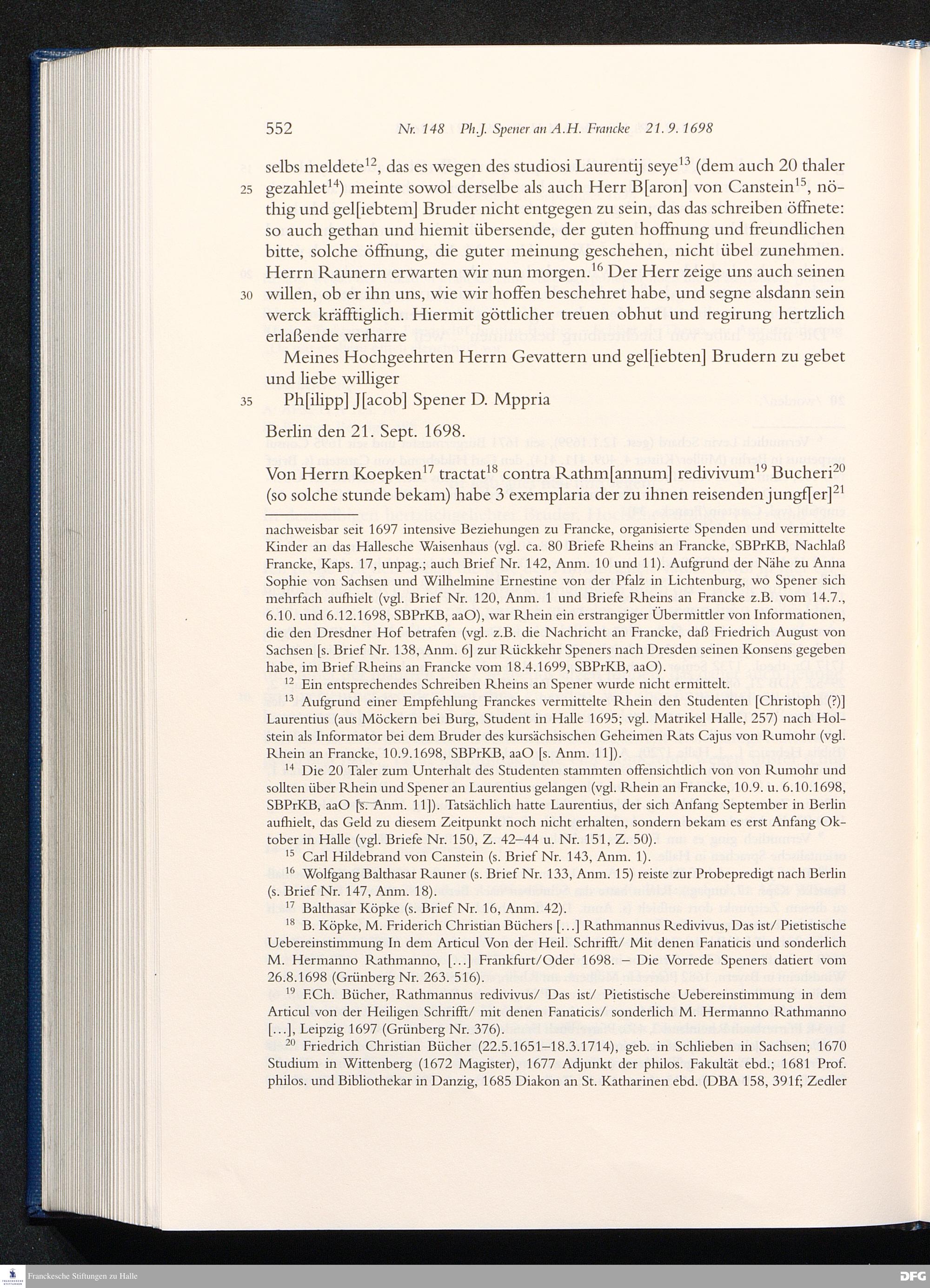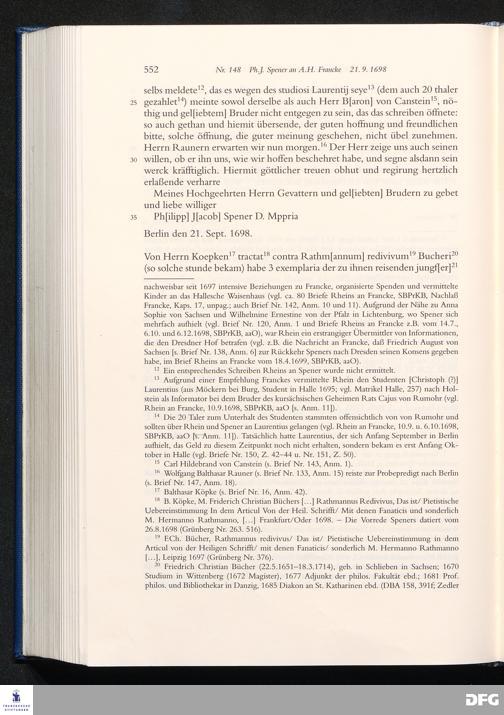 Briefwechsel mit August Hermann Francke : 1689 - 1704 / Philipp Jakob Spener. Hrsg. von Johannes Wallmann ... in Zsarb. mit Veronika Albrecht-Birkner