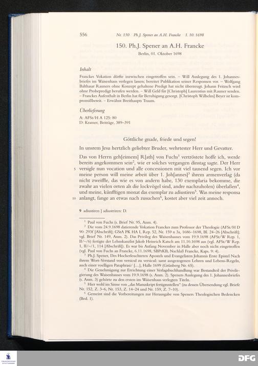 Briefwechsel mit August Hermann Francke : 1689 - 1704 / Philipp Jakob Spener. Hrsg. von Johannes Wallmann ... in Zsarb. mit Veronika Albrecht-Birkner