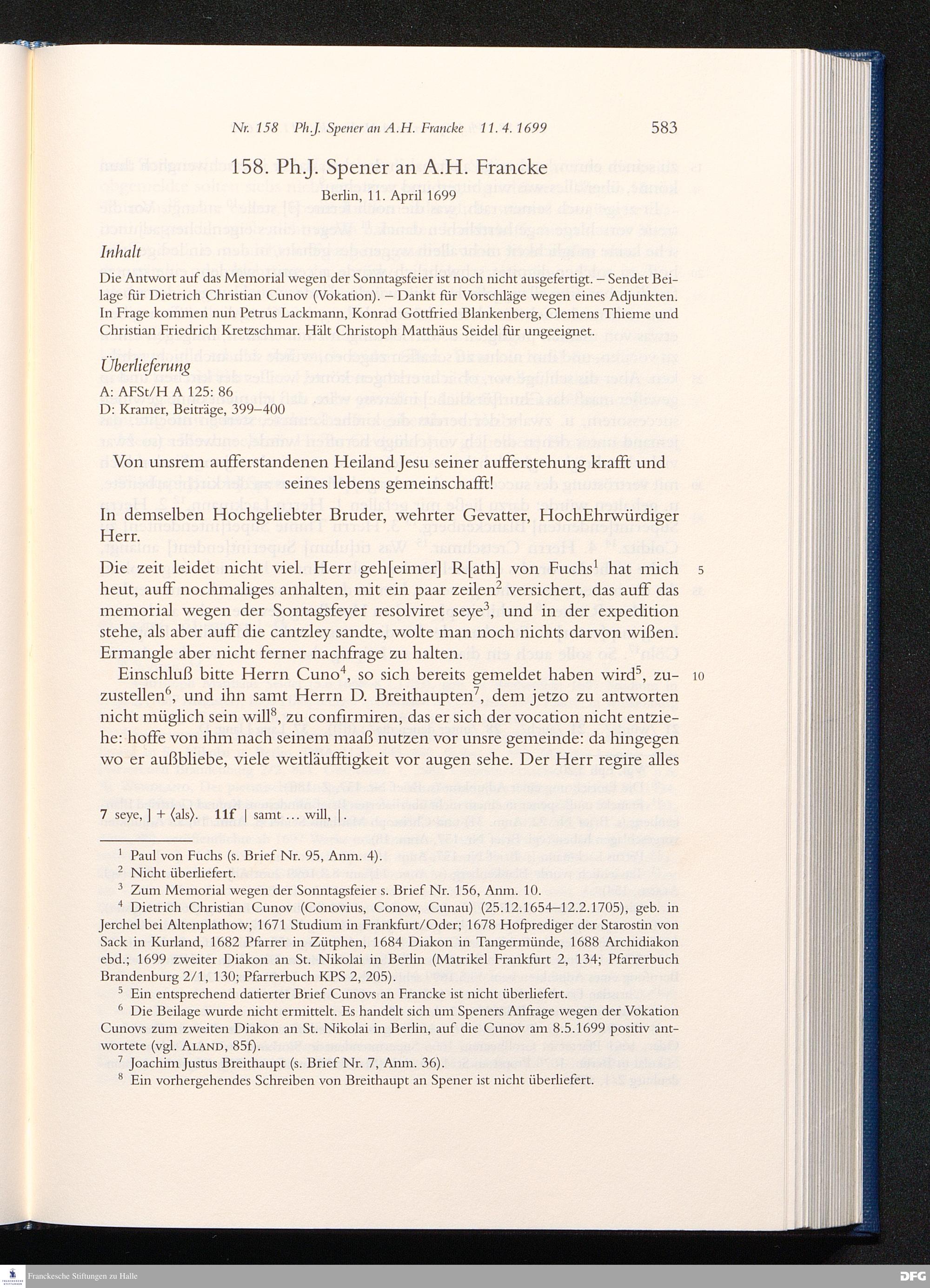 Briefwechsel mit August Hermann Francke : 1689 - 1704 / Philipp Jakob Spener. Hrsg. von Johannes Wallmann ... in Zsarb. mit Veronika Albrecht-Birkner