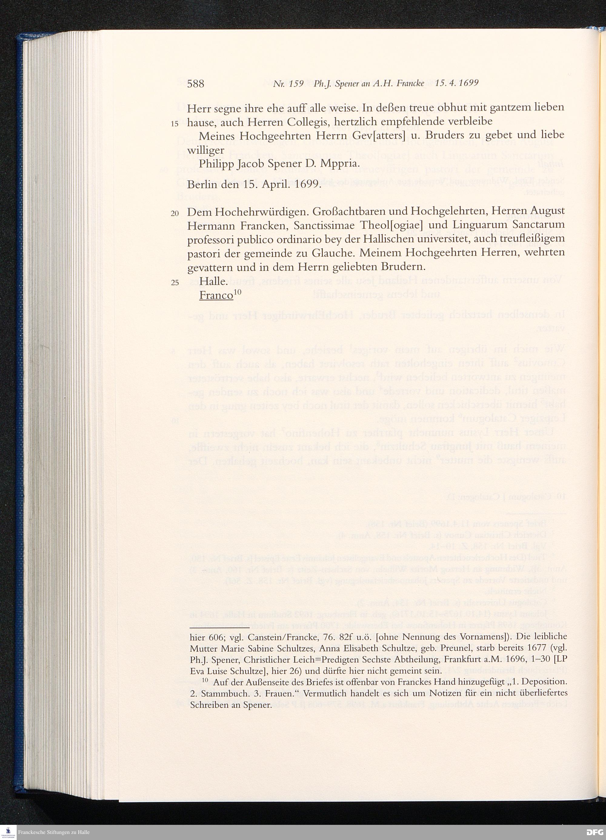 Briefwechsel mit August Hermann Francke : 1689 - 1704 / Philipp Jakob Spener. Hrsg. von Johannes Wallmann ... in Zsarb. mit Veronika Albrecht-Birkner