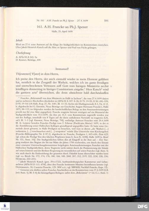 Nr. 161 A. H. Francke an Ph. J. Spener 25.04.1699