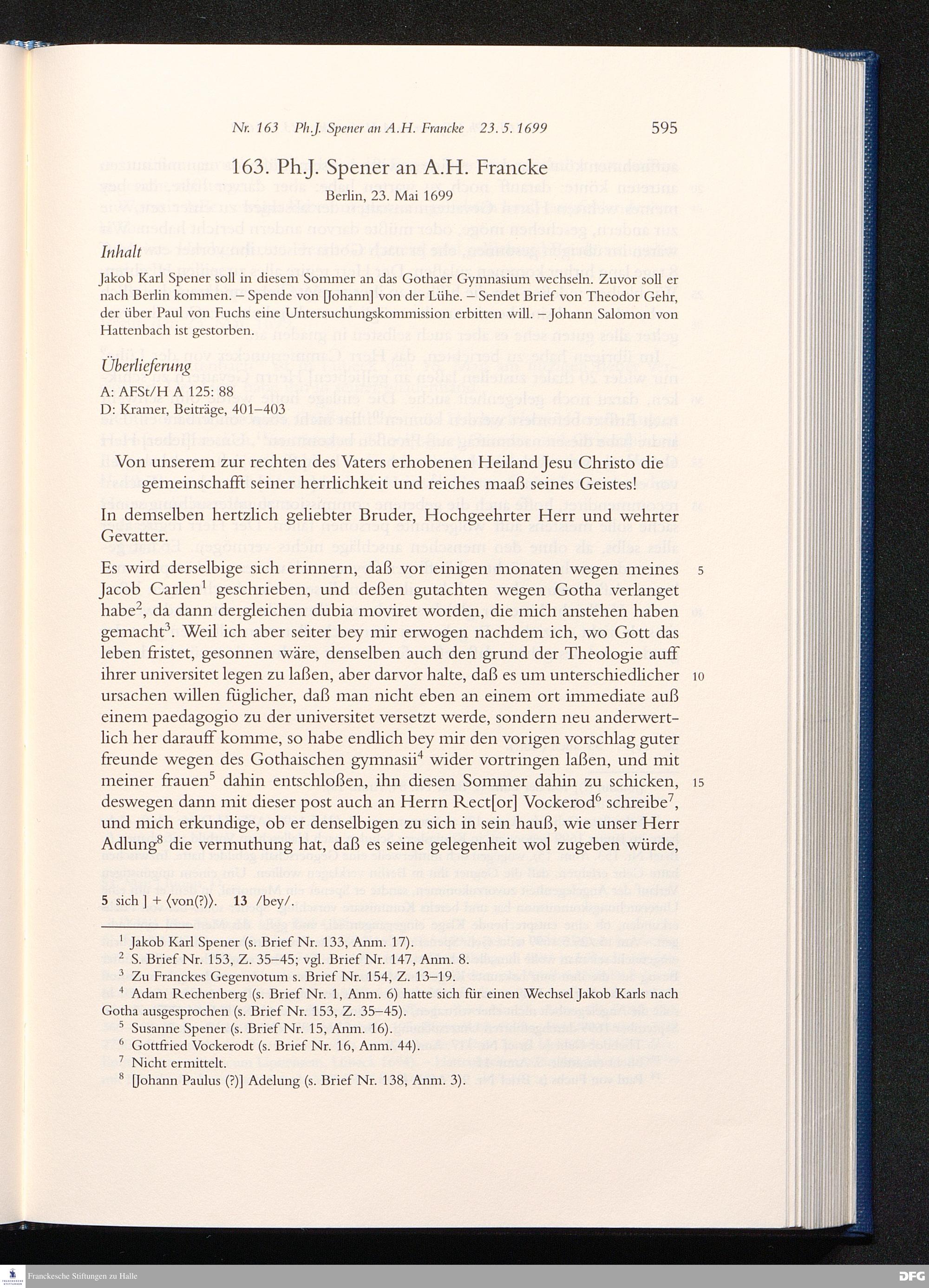 Briefwechsel mit August Hermann Francke : 1689 - 1704 / Philipp Jakob Spener. Hrsg. von Johannes Wallmann ... in Zsarb. mit Veronika Albrecht-Birkner