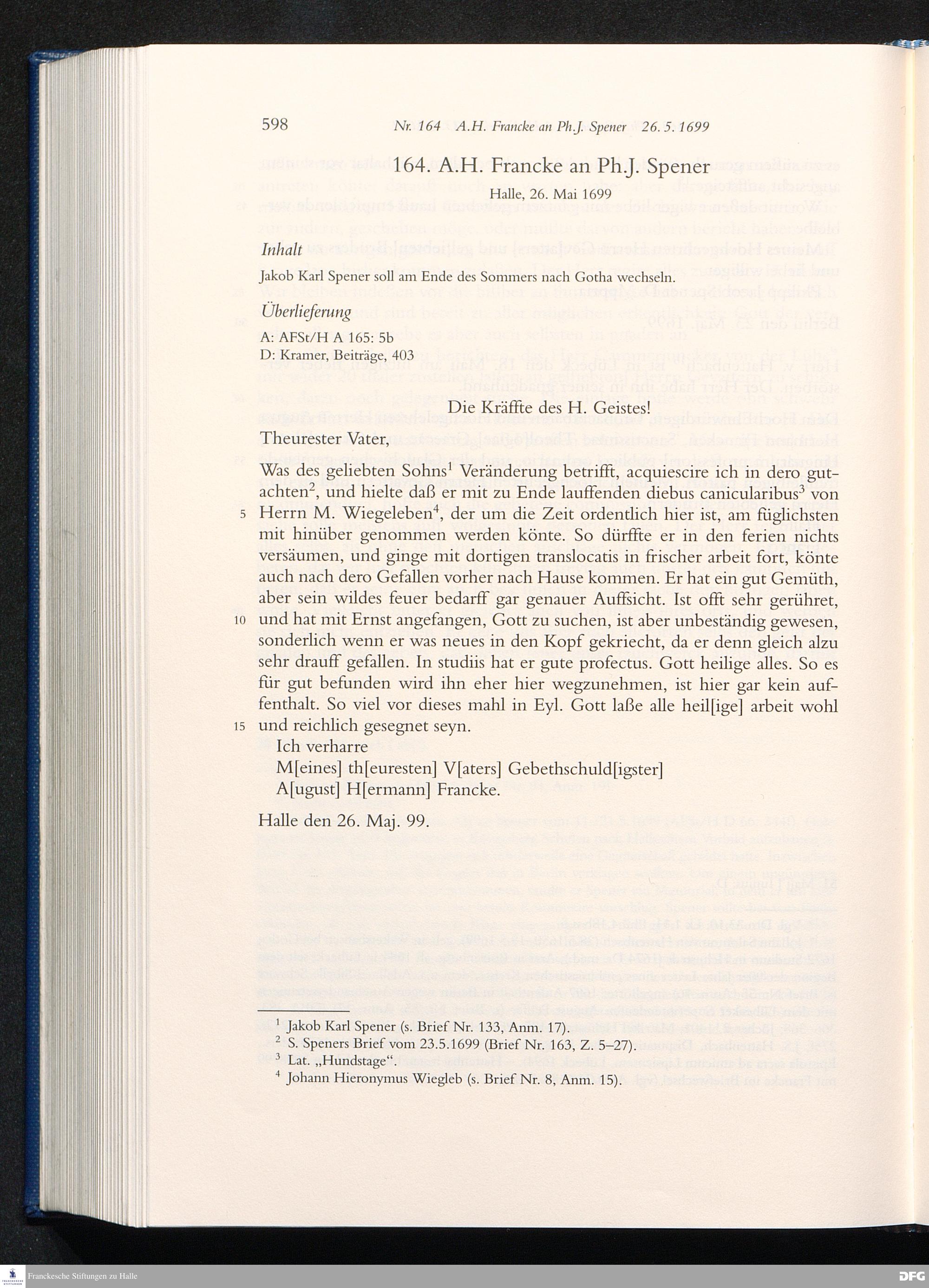 Nr. 164 A. H. Francke an Ph. J. Spener 26.05.1699