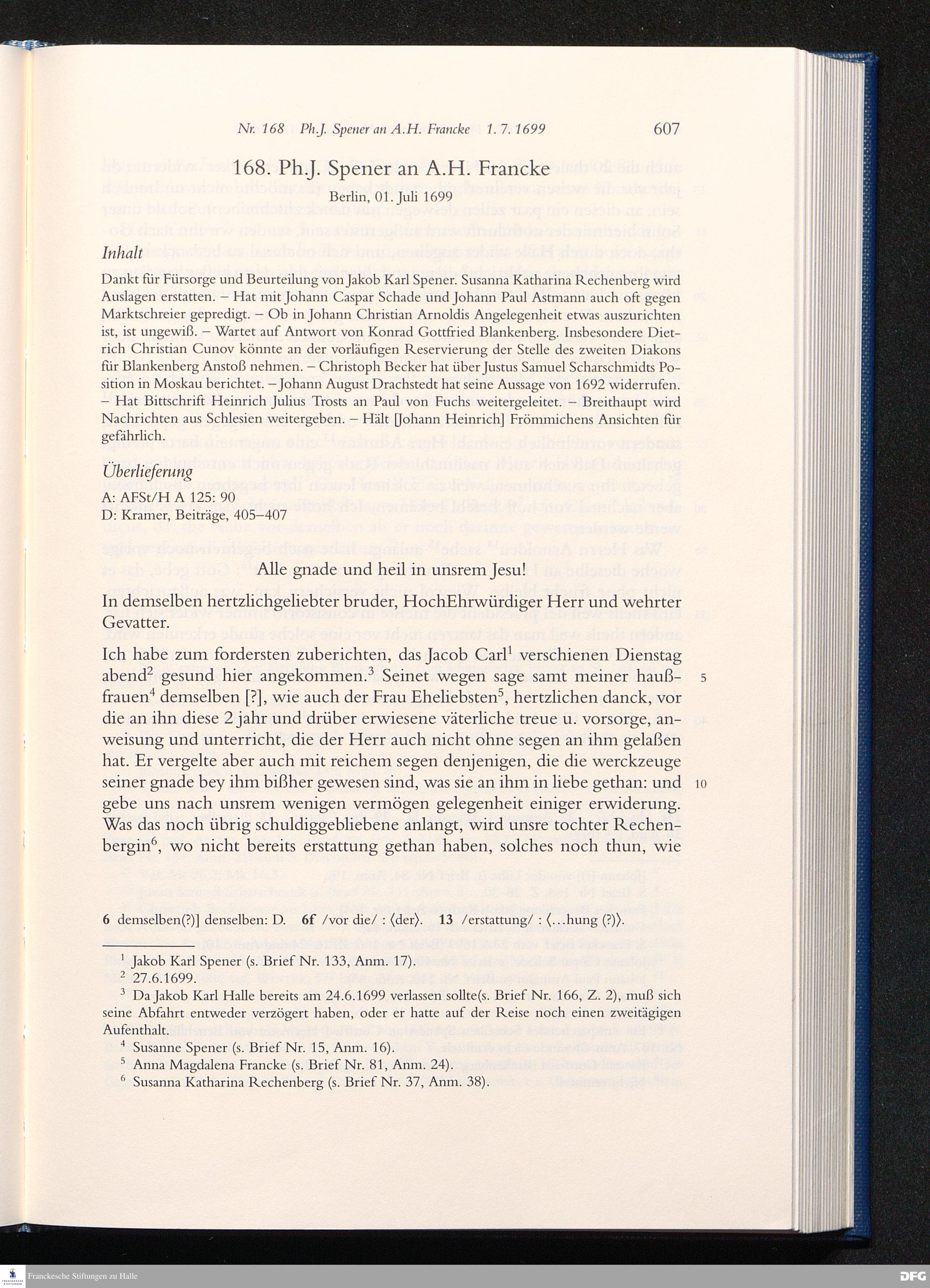 Briefwechsel mit August Hermann Francke : 1689 - 1704 / Philipp Jakob Spener. Hrsg. von Johannes Wallmann ... in Zsarb. mit Veronika Albrecht-Birkner