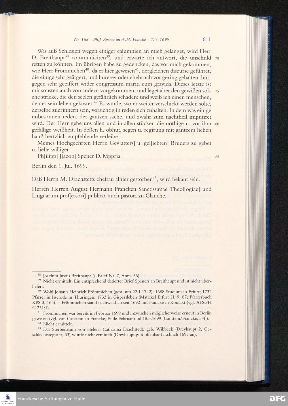 Briefwechsel mit August Hermann Francke : 1689 - 1704 / Philipp Jakob Spener. Hrsg. von Johannes Wallmann ... in Zsarb. mit Veronika Albrecht-Birkner