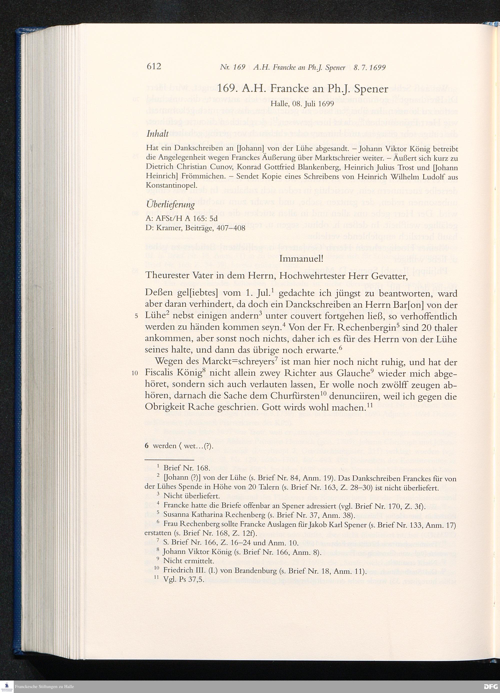 Nr. 169 A. H. Francke an Ph. J. Spener 08.07.1699