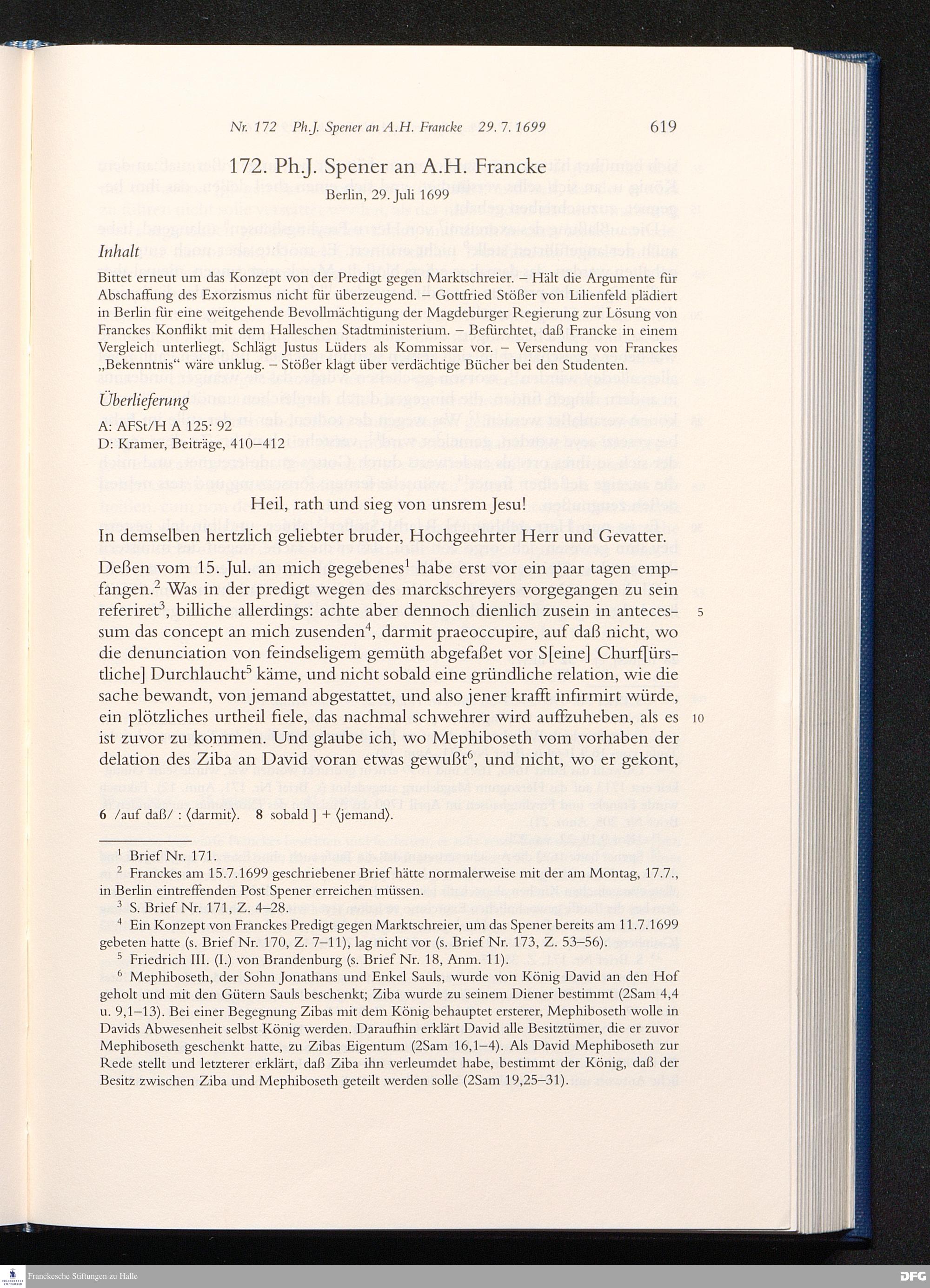 Briefwechsel mit August Hermann Francke : 1689 - 1704 / Philipp Jakob Spener. Hrsg. von Johannes Wallmann ... in Zsarb. mit Veronika Albrecht-Birkner