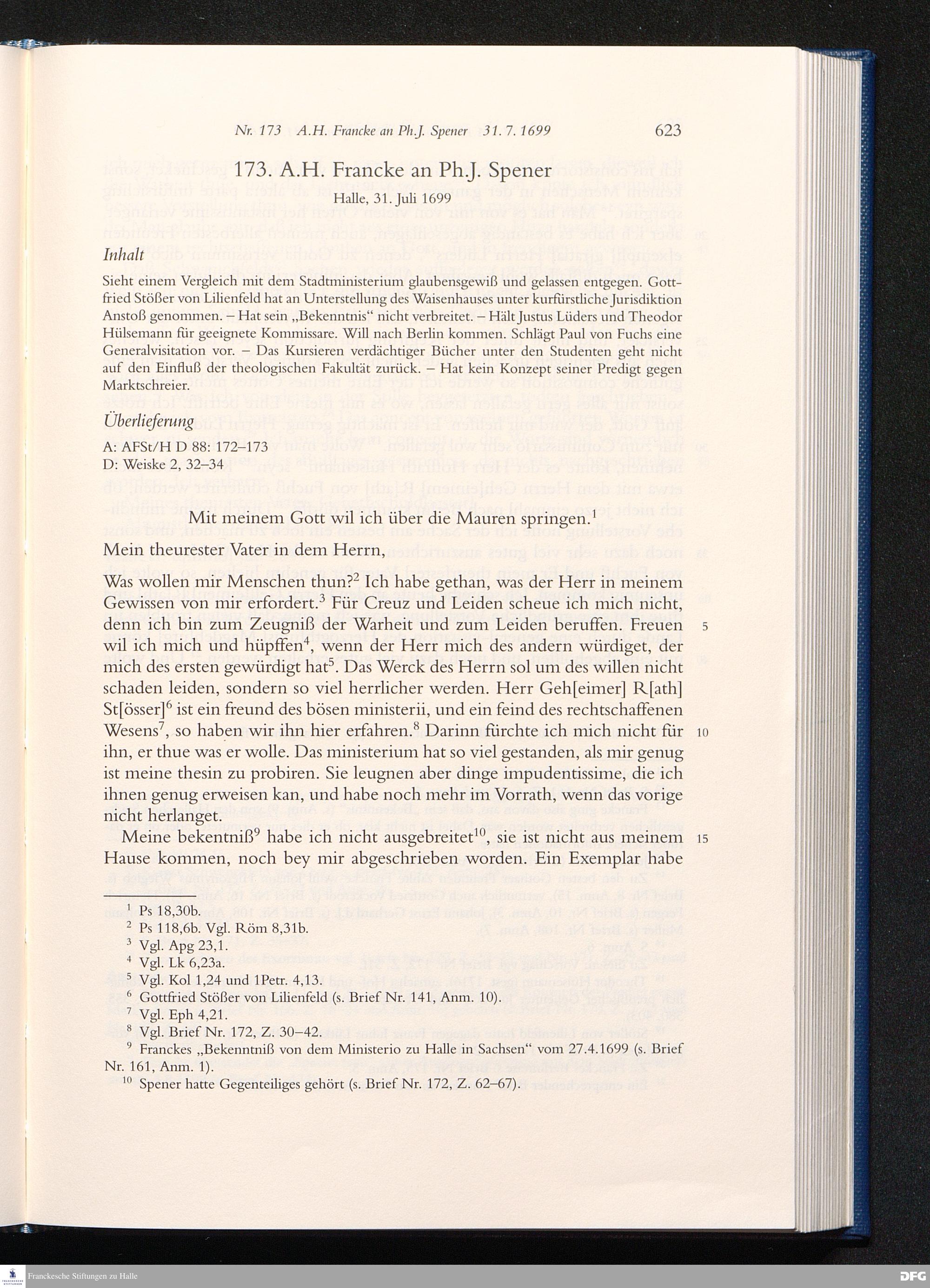 Nr. 173 A. H. Francke an Ph. J. Spener 31.07.1699