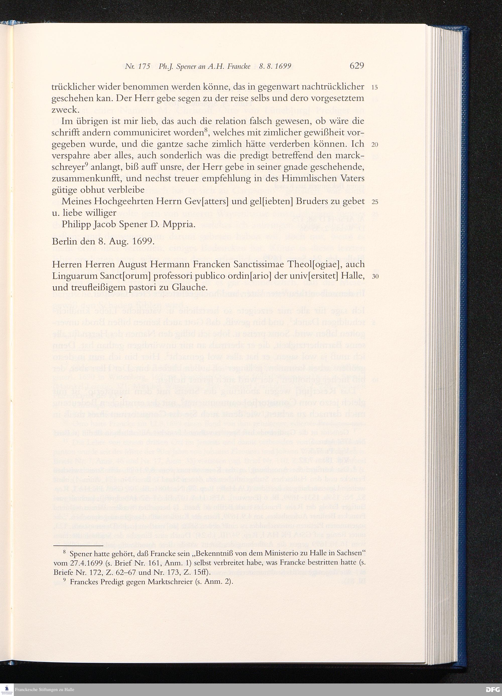 Briefwechsel mit August Hermann Francke : 1689 - 1704 / Philipp Jakob Spener. Hrsg. von Johannes Wallmann ... in Zsarb. mit Veronika Albrecht-Birkner